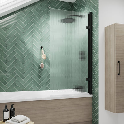 8mm Fluted Square Hinged Bath Screen - Matt Black