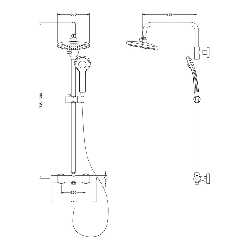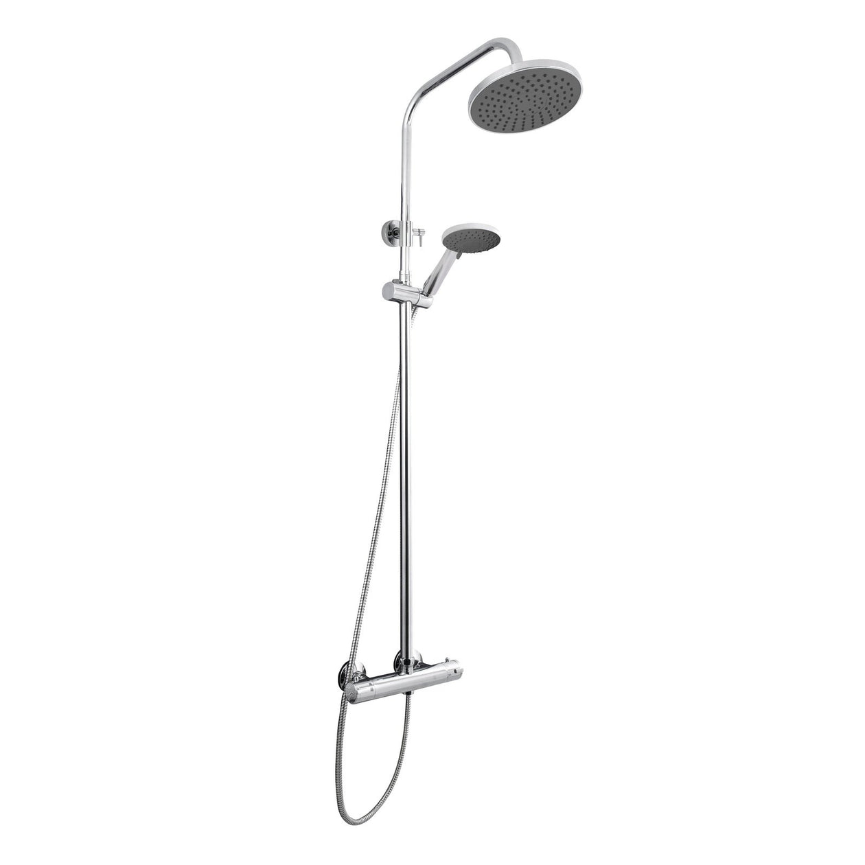 The Lana round shower set features a gloss chrome finish and a modern round style and has an overhead shower for a luxurious drench shower plus a height adjustable shower handset for body washing. The shower set includes a thermostatic shower valve that allows you to switch water flow between the overhead and handset and adjust the temperature. As it is thermostatic, you can shower safely knowing that you will not get any sudden spikes in water temperature. Exposed showers are easy to fit and can be used either in a shower enclosure or above a bath with sufficient space.