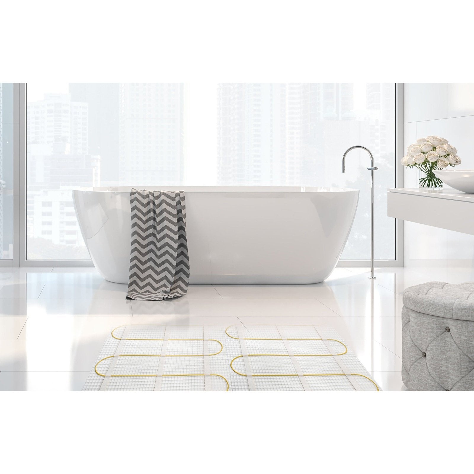Our underfloor heating offers the ultimate in luxury comfort, whether as a primary heat source for your room or used in conjunction with other radiators and heated towel rails. The underfloor mat provides an even temperature throughout the room, giving a natural warmth as heat rises upwards from the floor. Energy efficient and easy to install, our underfloor heating mats are suitable for tiled, laminate or wooden floors. The underfloor heating mats come with a 12 year guarantee for complete peace-of-mind.
