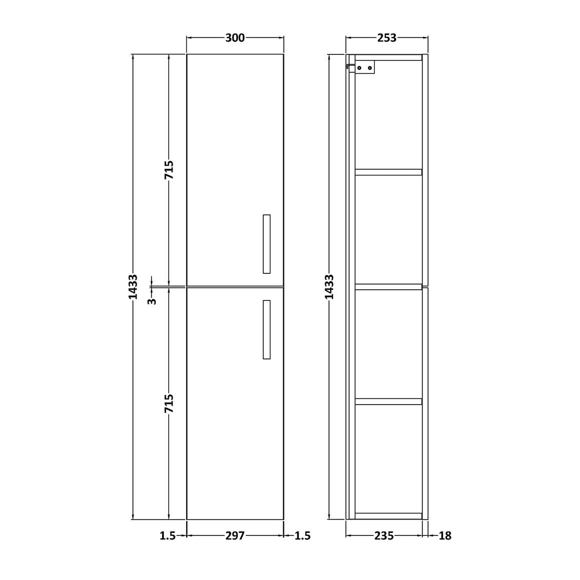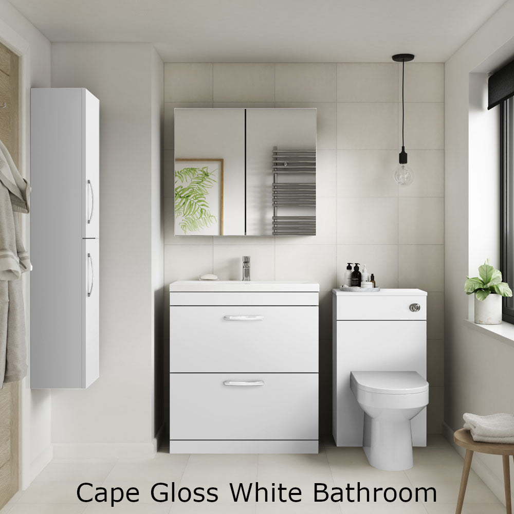 Part of our popular Cape collection, this wall hung tall unit will provide plenty of extra storage for your bathroom and at just 300mm wide and 253mm depth it does not require a lot of space. The tall unit is available in a range of colours that will match with other items in our bathroom furniture collections. The Cape tall unit comes with two soft close doors, preventing any unwanted loud bangs in the middle of the night and comes with chrome handles. It features 3 internal middle shelves which provides lots of space for storing away all of your bathroom essentials and comes with a 5 year guarantee for added peace of mind.