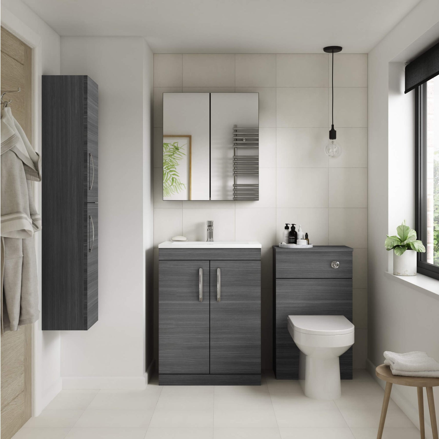 Cape 600mm Mirror Cabinet - Anthracite Woodgrain