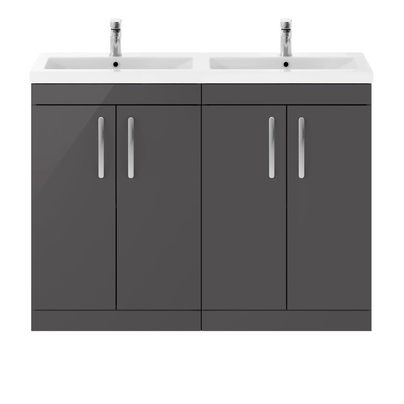 Cape 1200mm Floor Standing 4 Door Vanity Unit & Double Ceramic Basin - Gloss Grey