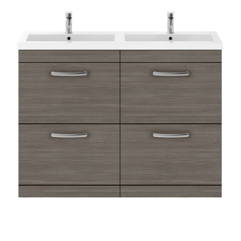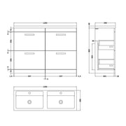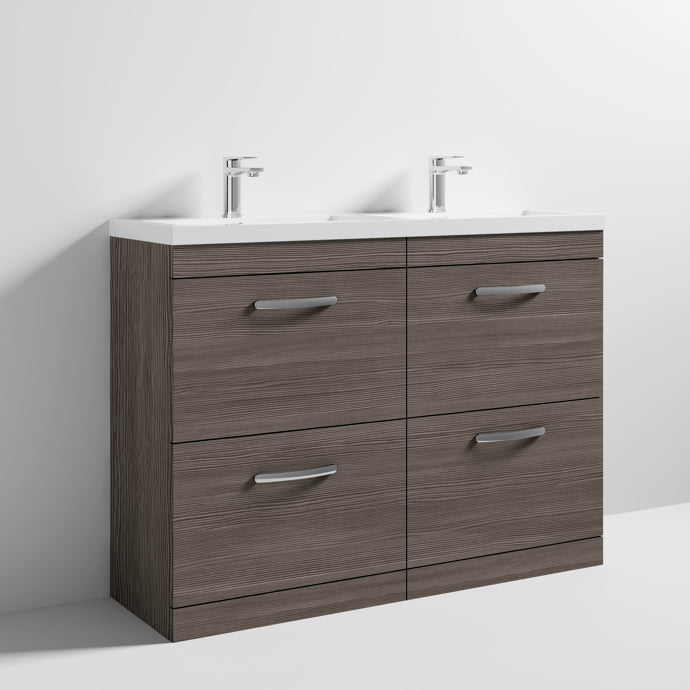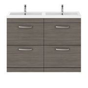 Cape 1200mm Floor Standing 4 Drawer Vanity Unit & Double Resin Basin - Anthracite Woodgrain