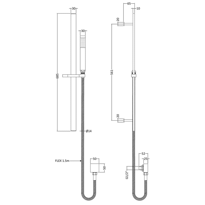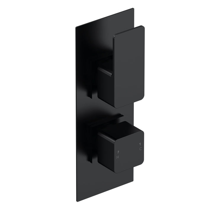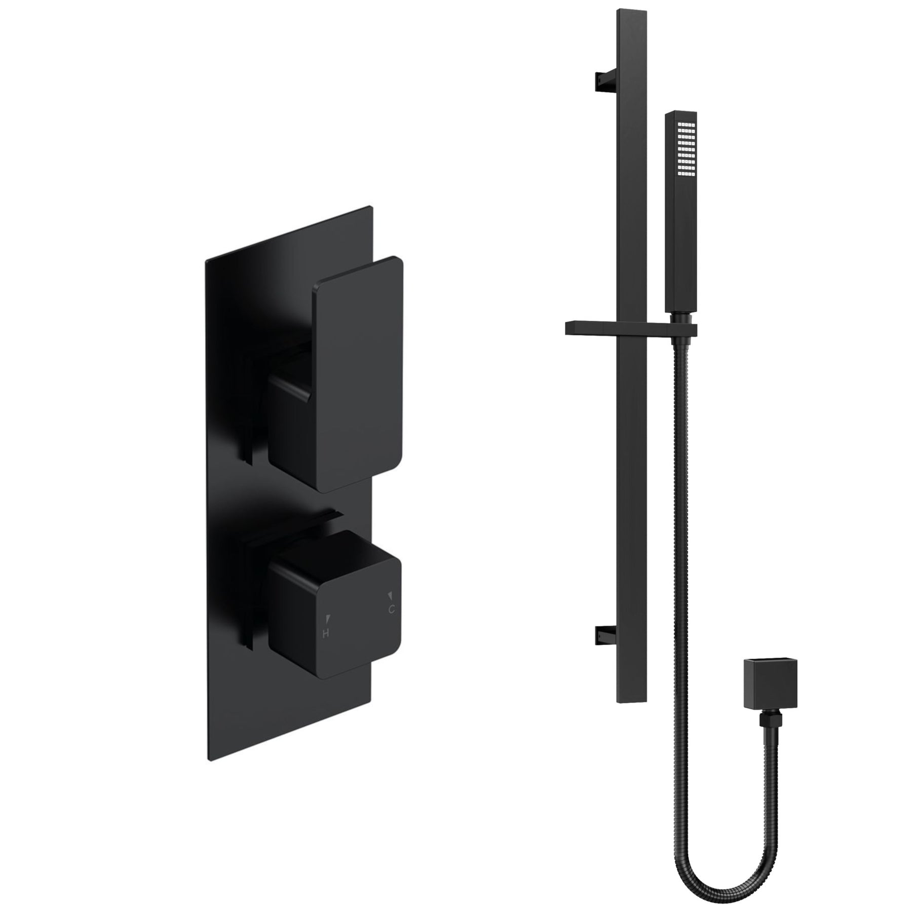 With a modern rectangular design and a stylish matt black finish, the Cape Black concealed shower set will certainly catch the eye. The kit includes a concealed thermostatic valve and a sliding rail kit that has height adjustment for easy showering. The concealed valve allows you to easily control water flor and temperature to the rail kit and as it is thermostatic it will maintain a steady temperature even if other taps are turned on elsewhere in the house. The shower kit requires a minimum of 0.2 bar pressure to operate so is suitable for virtually any shower system (it will work at low or high pressure).