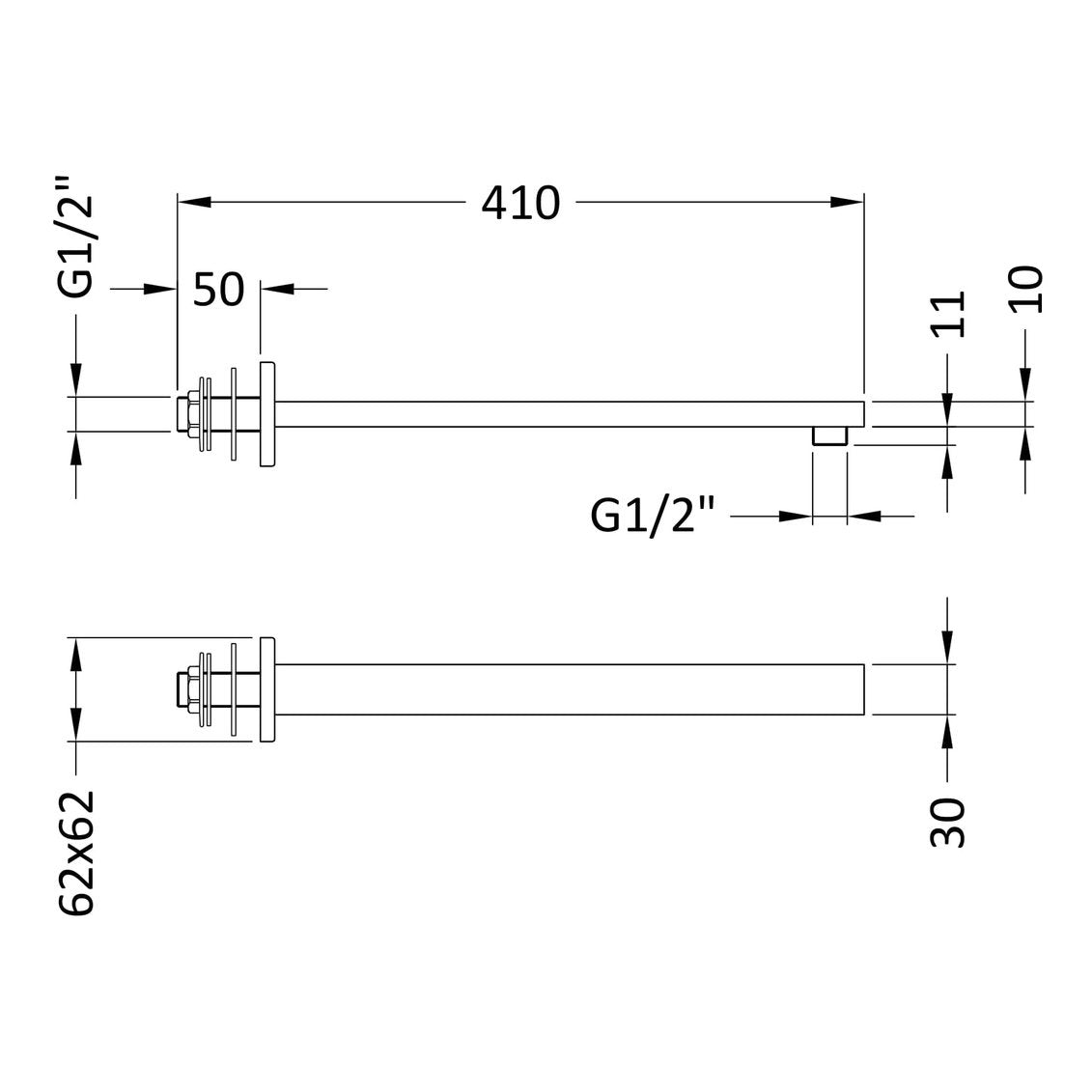 Cape Brushed Brass Square Wall Mounted Shower Arm