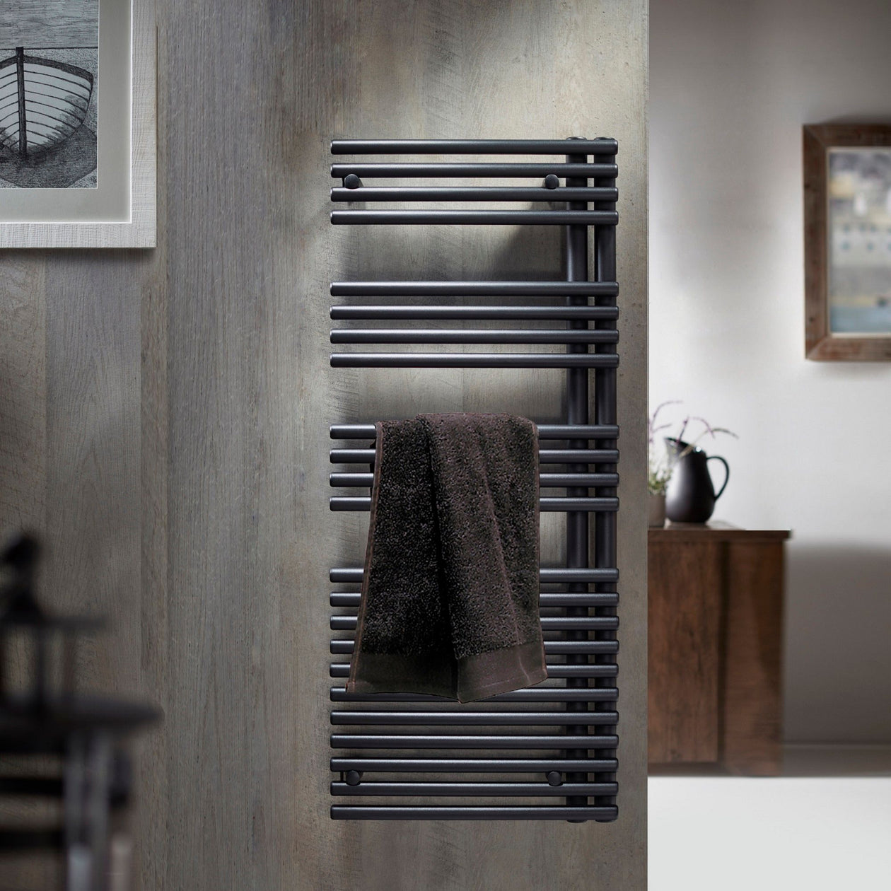 The Capri Anthracite towel rail radiator has a stunning dark grey / nearly black finish and features an offset design (available left or right handed) that will really catch the eye. The towel rail features large gaps for towels and due to the offset design, it is easy to slide towels in and out. The towel rail is available in a range of sizes to suit the space you have available each with an excellent heat output level (varying dependent on size, see size information below).