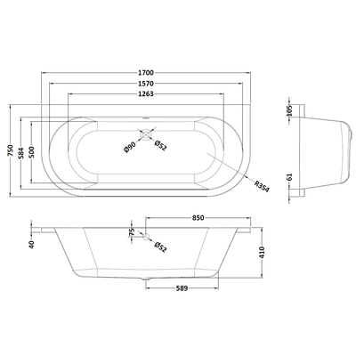 Capri Back To Wall Bath With Panel 1700 x 750mm