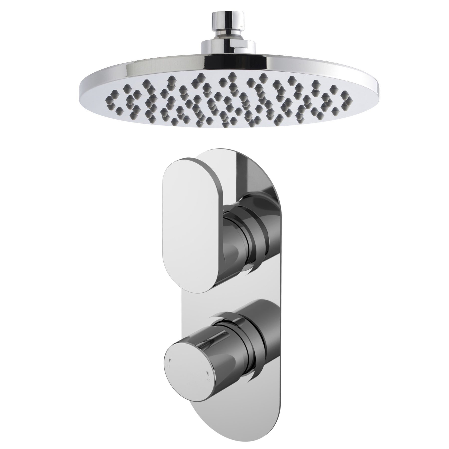 The Capri concealed shower set will look great in modern bathrooms, with its rounded design and gloss chrome finish. The kit includes a concealed thermostatic valve, a round 200 x 200mm fixed head shower and a choice of wall or ceiling arms allowing for the perfect installation option. The concealed valve allows you to easily control water flor and temperature to the overhead and as it is thermostatic it will maintain a steady temperature even if other taps are turned on elsewhere in the house. The overhead has a pivoting ball joint so you can angle it as desired and features easy clean nozzles to help prevent the build-up of limescale. The shower kit requires a minimum of 0.2 bar pressure to operate so is suitable for virtually any shower system (it will work at low or high pressure).