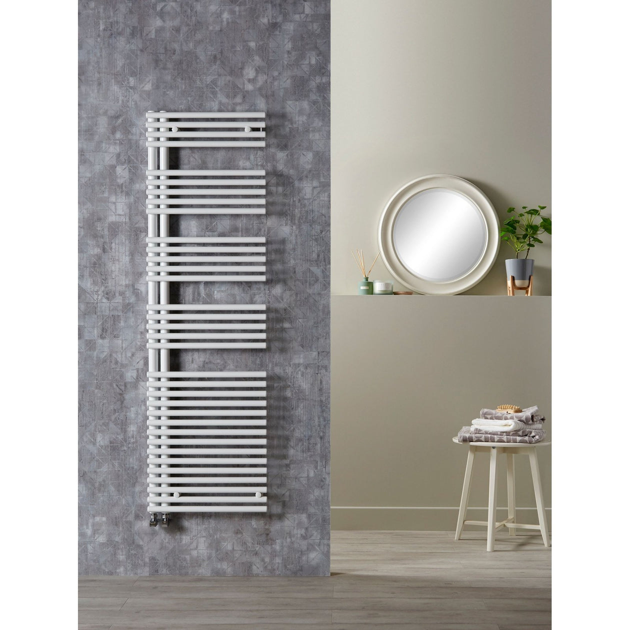 The Capri White towel rail radiator has a modern gloss white finish and features an offset design (available left or right handed) that will really catch the eye. The towel rail features large gaps for towels and due to the offset design, it is easy to slide towels in and out. The towel rail is available in a range of sizes to suit the space you have available each with an excellent heat output level (varying dependent on size, see size information below).
