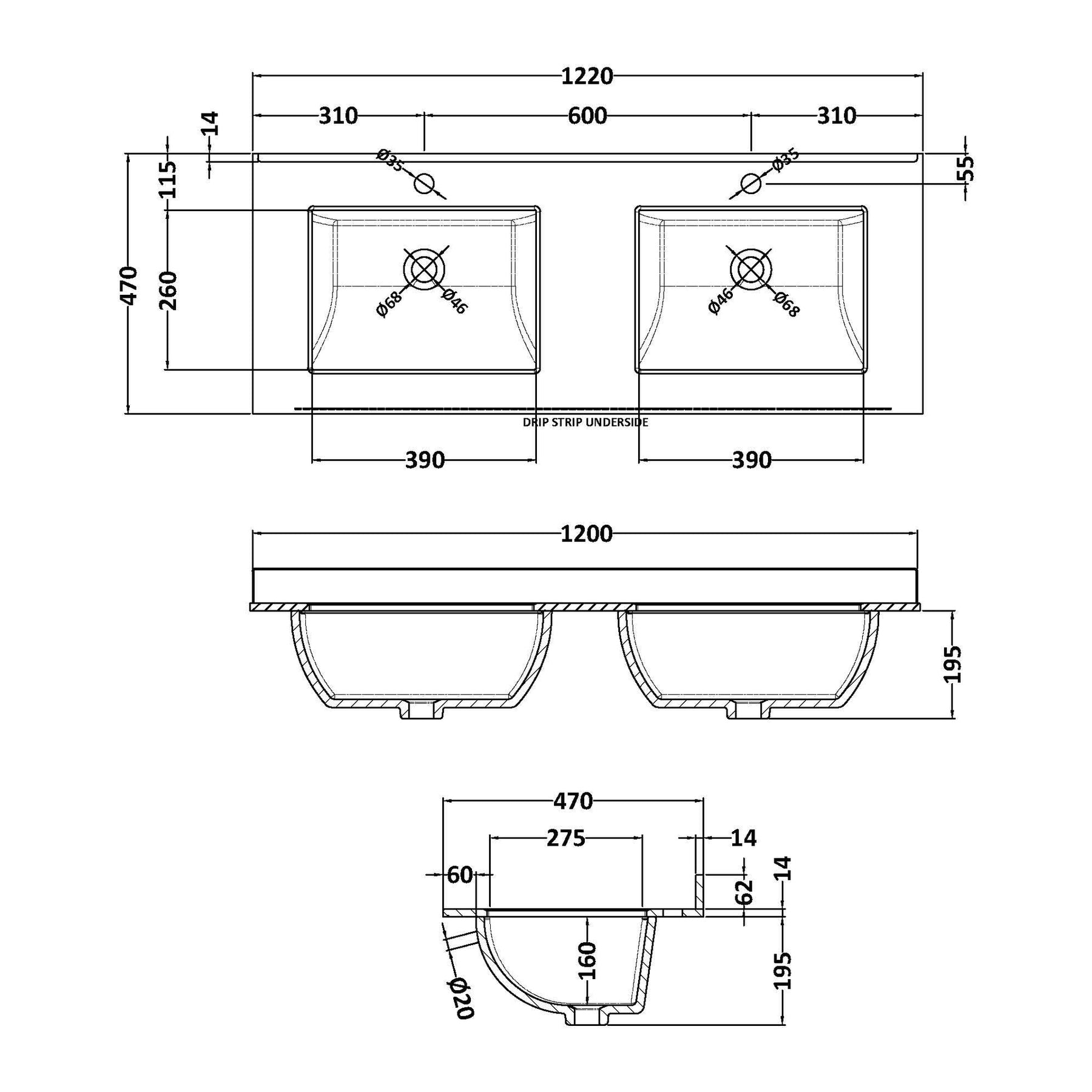 The Classique vanity unit comes with a beautiful White Marble stone worktop which includes two deep inset square ceramic basins, giving off hotel-luxury vibes. The basins have 1 tap hole each, for use with monobloc basin mixer taps and have overflows (for use with slotted or universal wastes).
