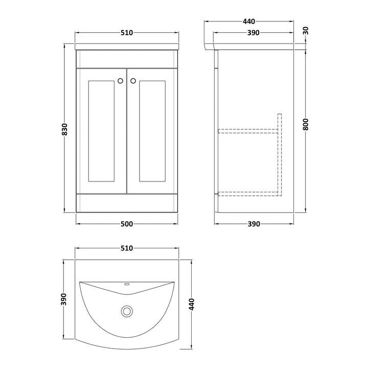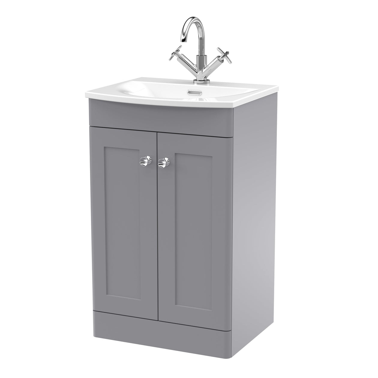 Classique 500mm Floor Standing Vanity Unit With 2 Doors With Curved Ceramic Basin - Satin Grey
