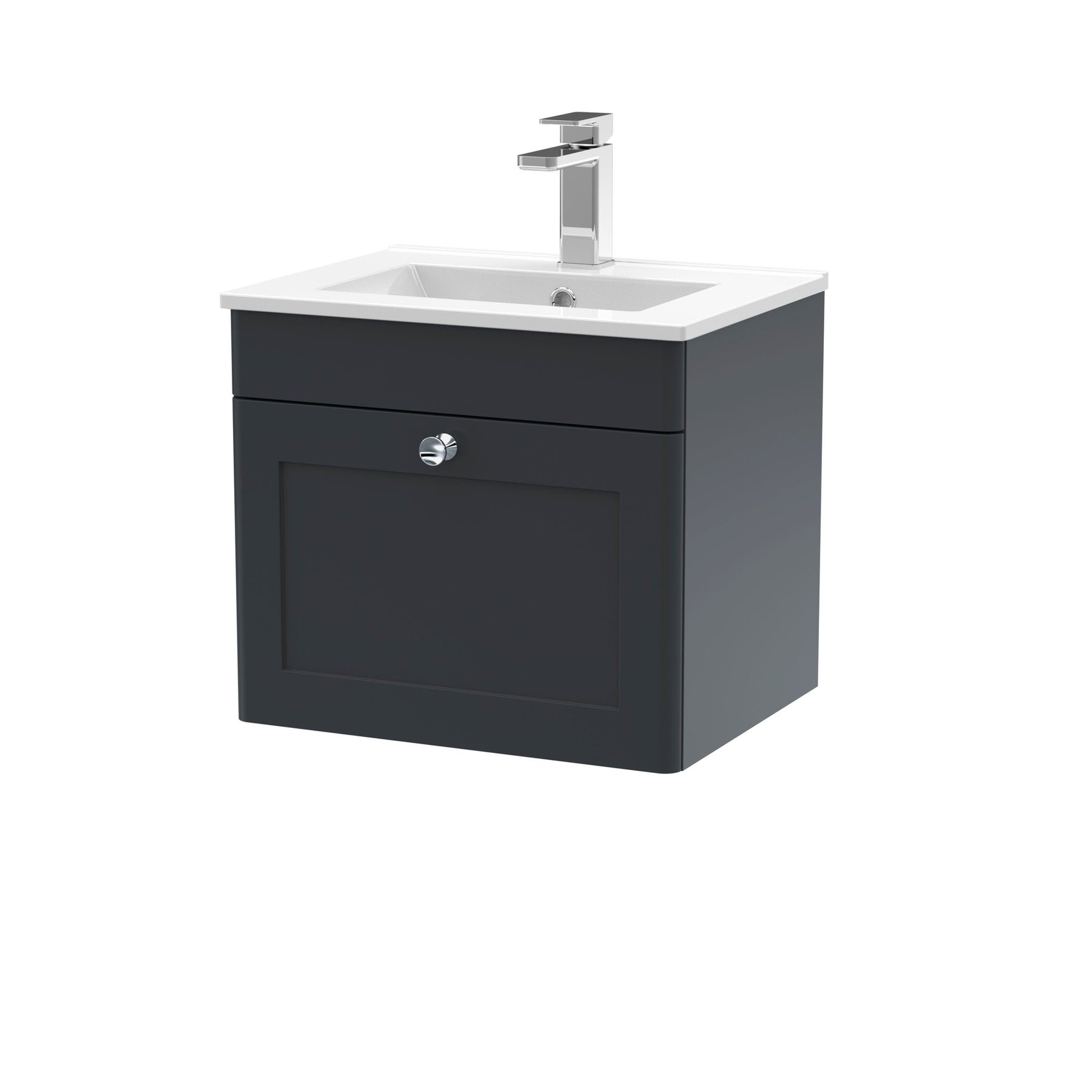 Classique 500mm Wall Hung Vanity Unit With 1 Drawer With Minimalist Ceramic Basin - Satin Soft Black