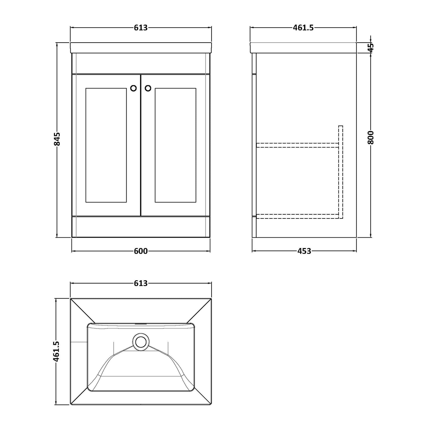 Classique 600mm Floor Standing Vanity Unit With 2 Doors With Contemporary Basin - Satin White