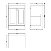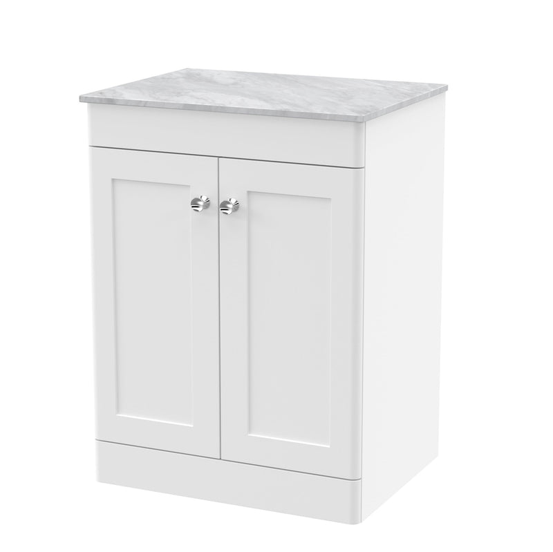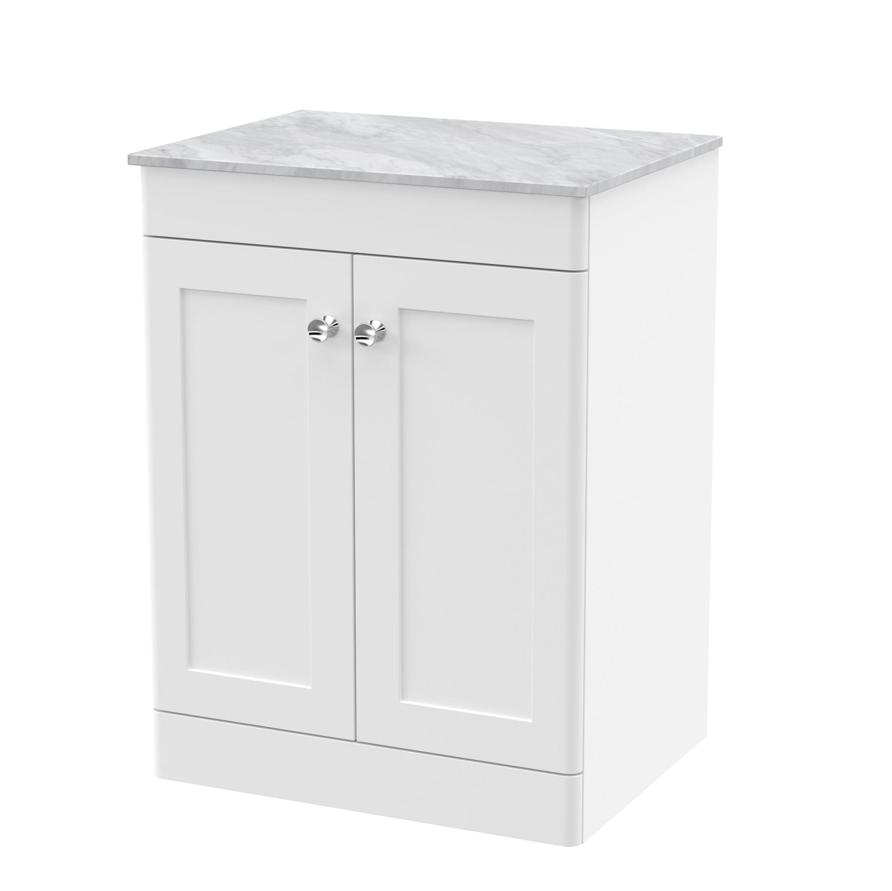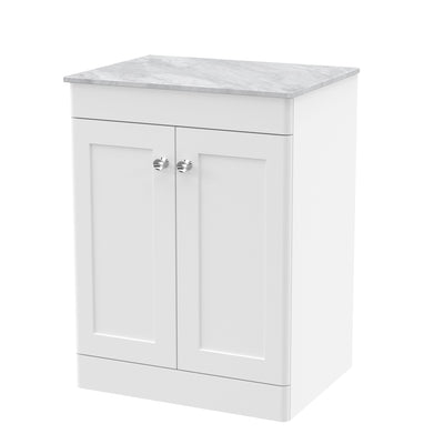 Classique 600mm Floor Standing Vanity Unit With 2 Doors With Grey Marble Worktop - Satin White