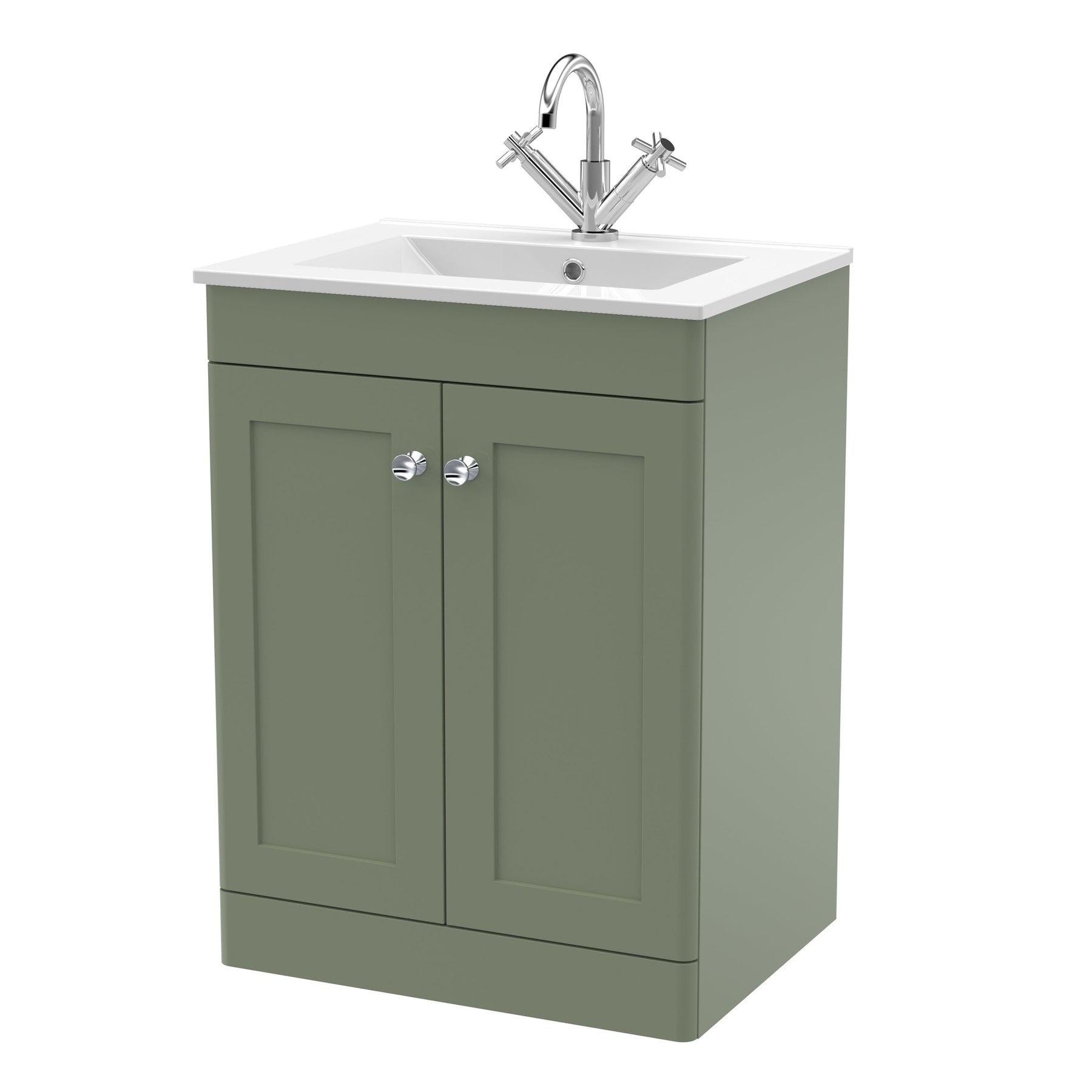 Classique 600mm Floor Standing Vanity Unit With 2 Doors With Minimalist Ceramic Basin - Satin Green