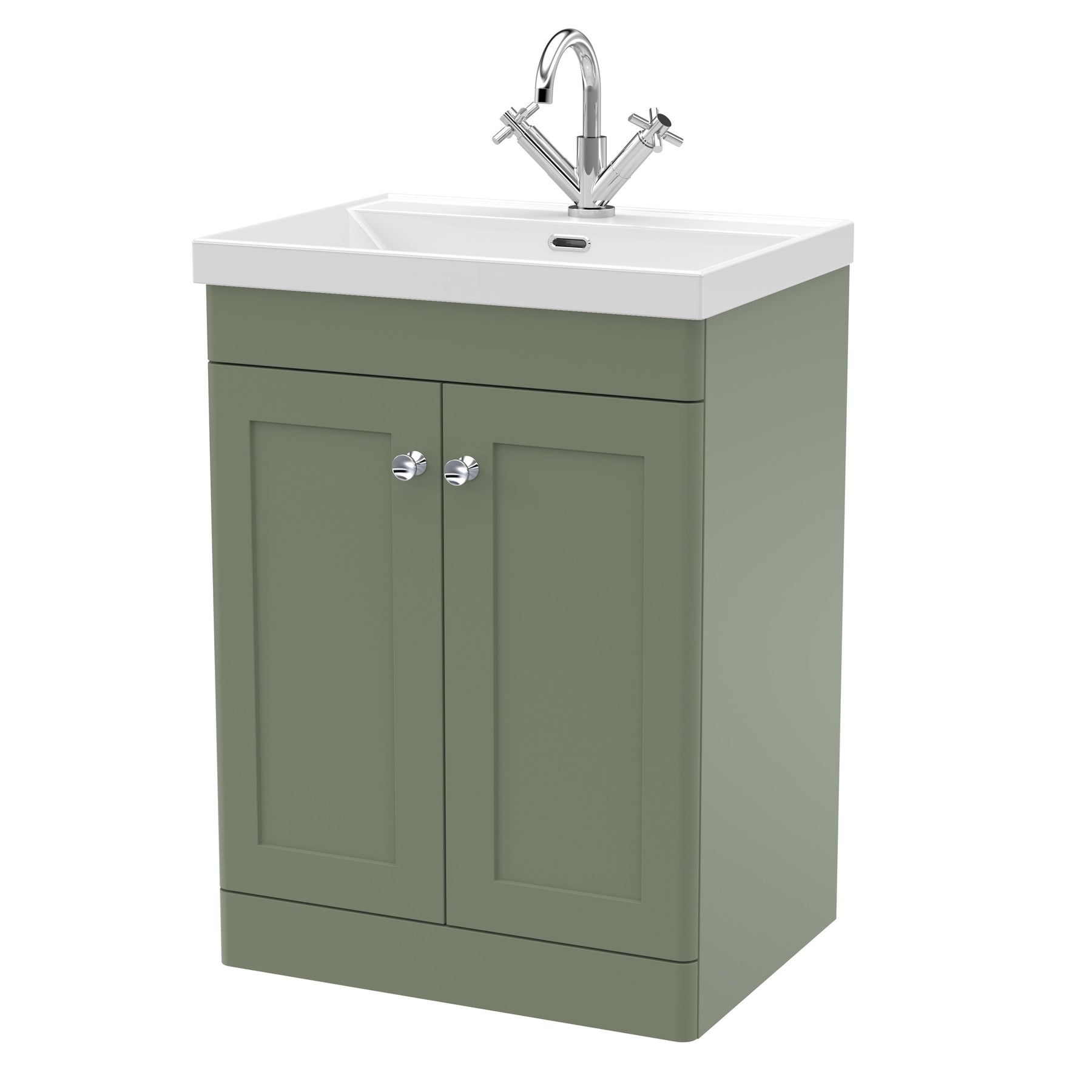 Classique 600mm Floor Standing Vanity Unit With 2 Doors With Thin Edge Ceramic Basin - Satin Green