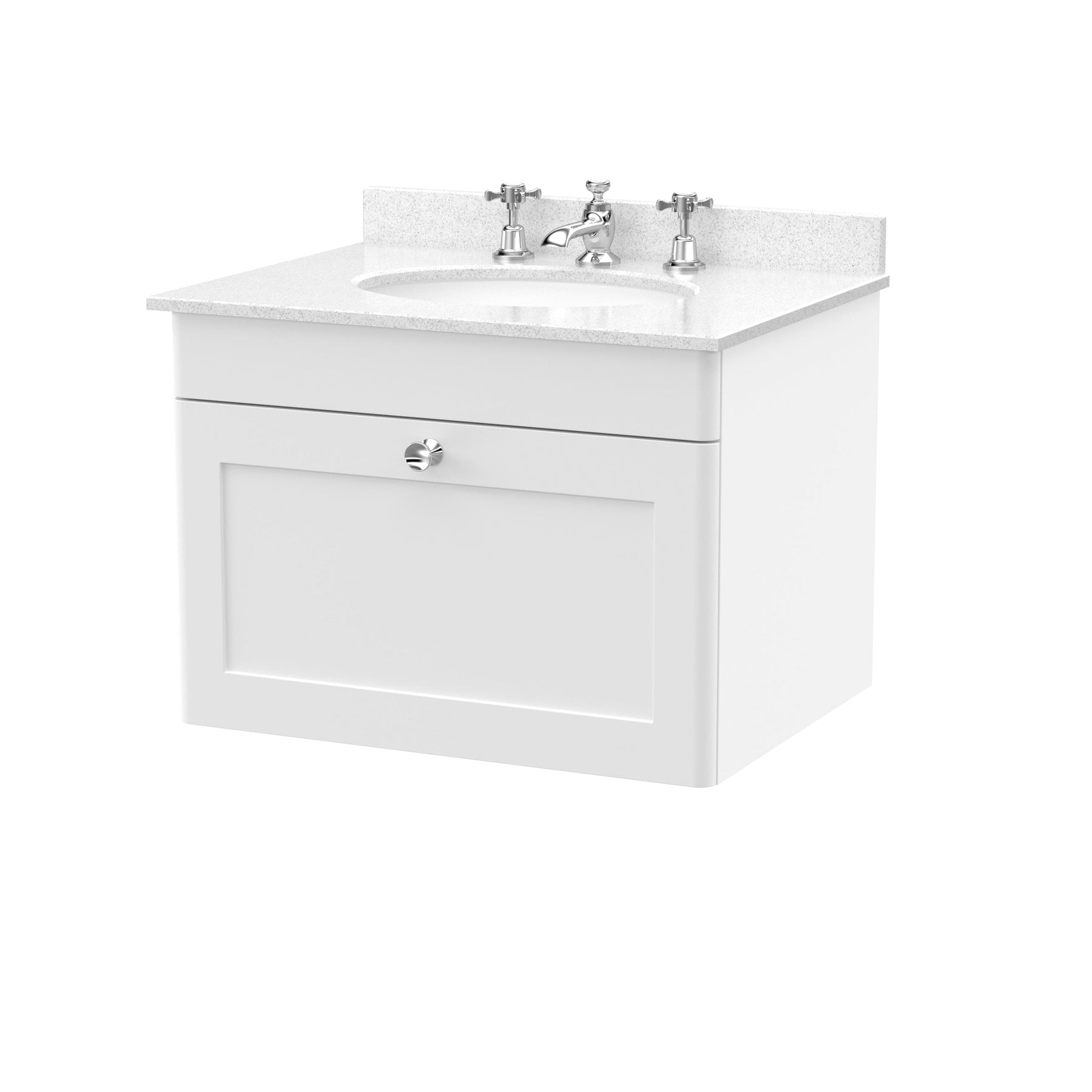 Classique units come with chrome handles included as shown. You can choose alternative handles in different colours, styles and sizes from the links to handles below. The vanity units come undrilled, so you can fit any handle of your choice.