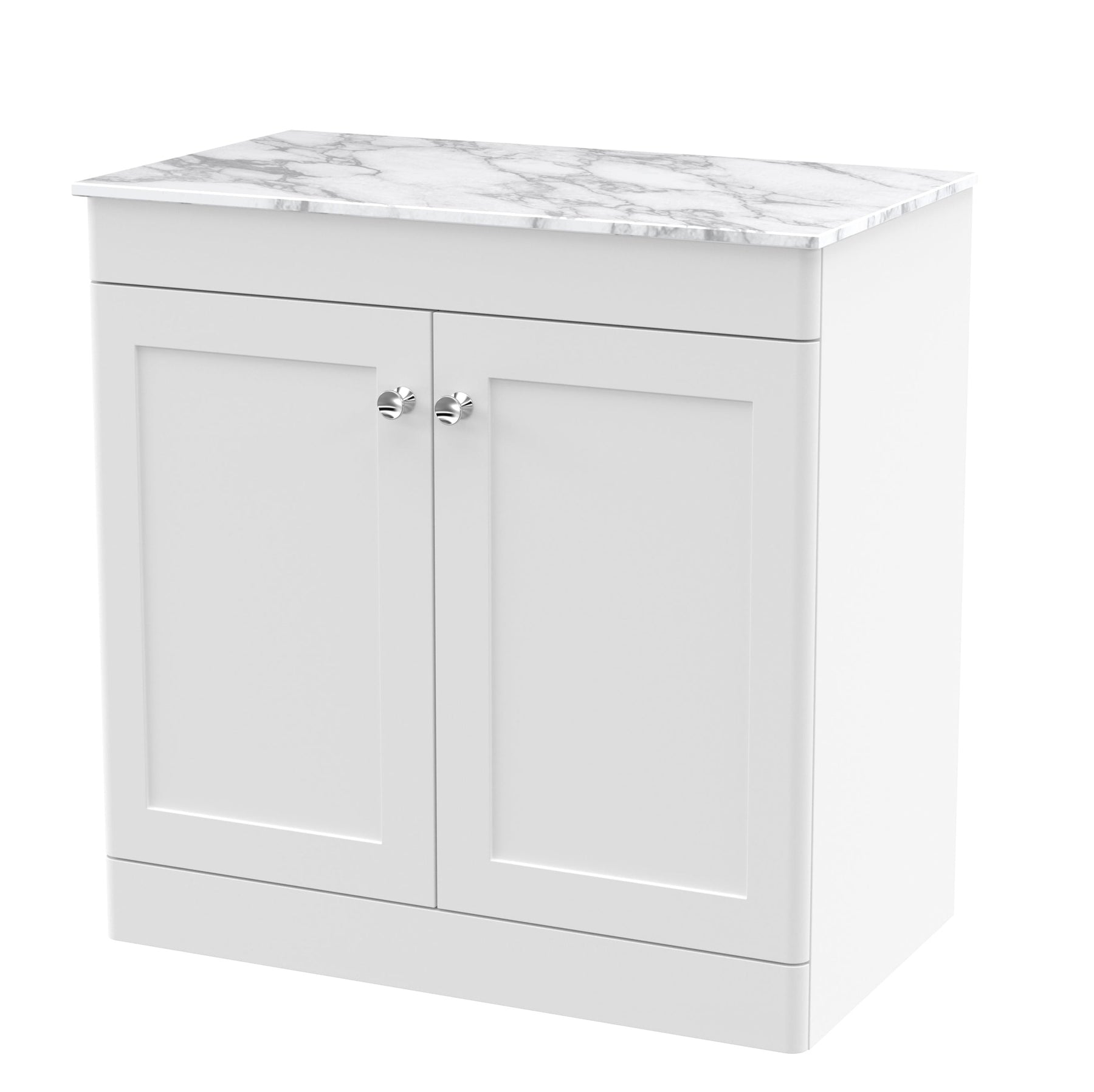 Classique 800mm Floor Standing Vanity Unit With 2 Doors With Carrera Marble Worktop - Satin White