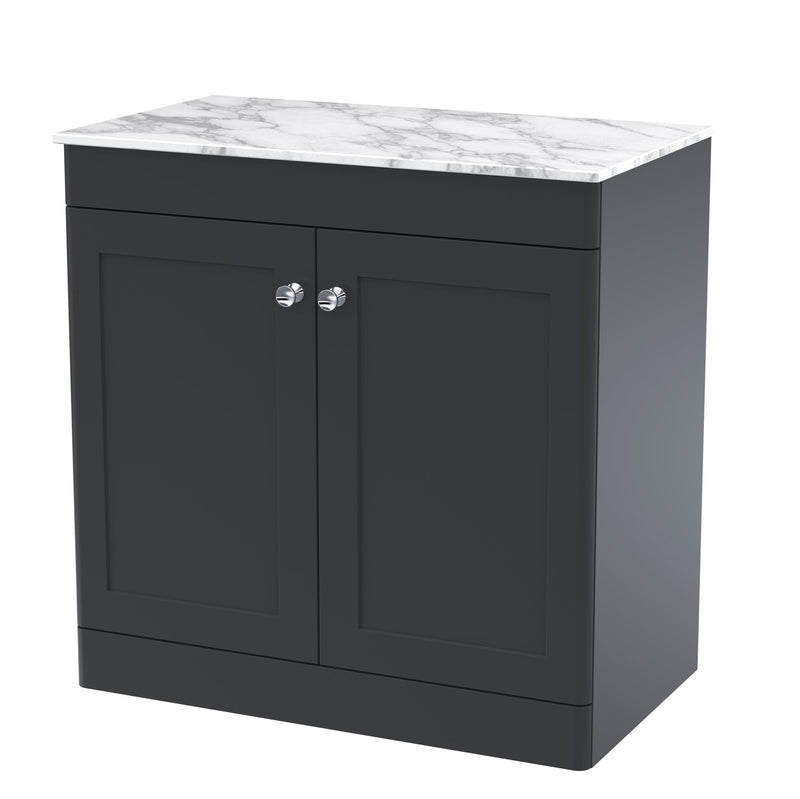 Classique 800mm Floor Standing Vanity Unit With 2 Doors With Carrera Marble Worktop - Satin Soft Black