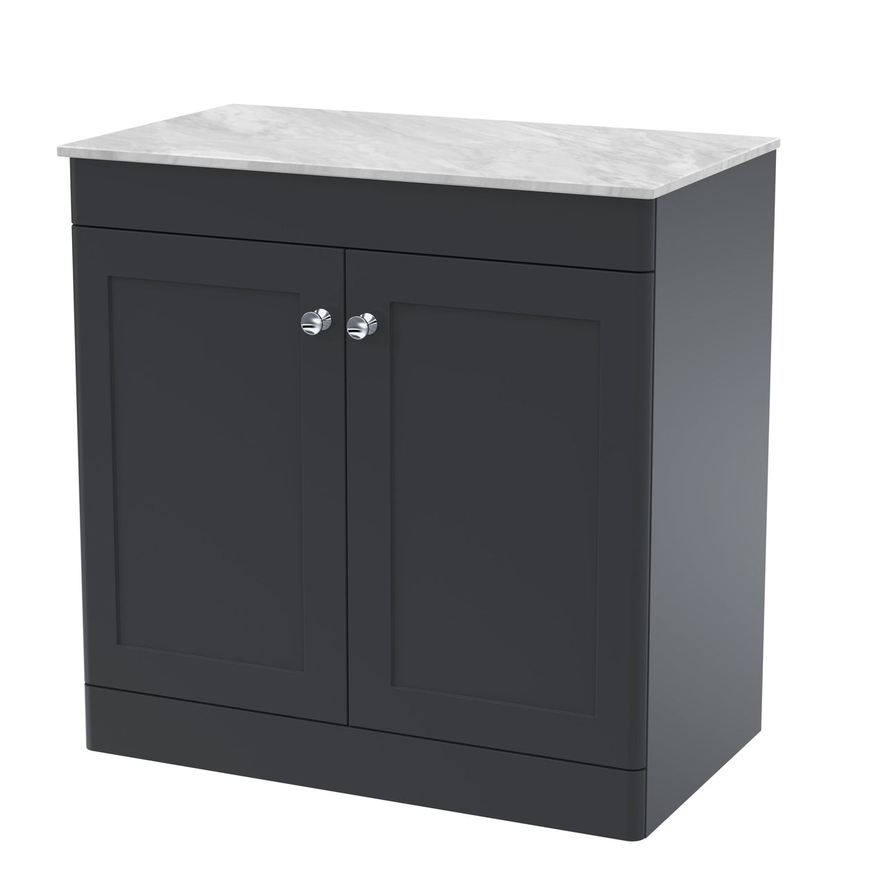 Classique 800mm Floor Standing Vanity Unit With 2 Doors With Grey Marble Worktop - Satin Soft Black