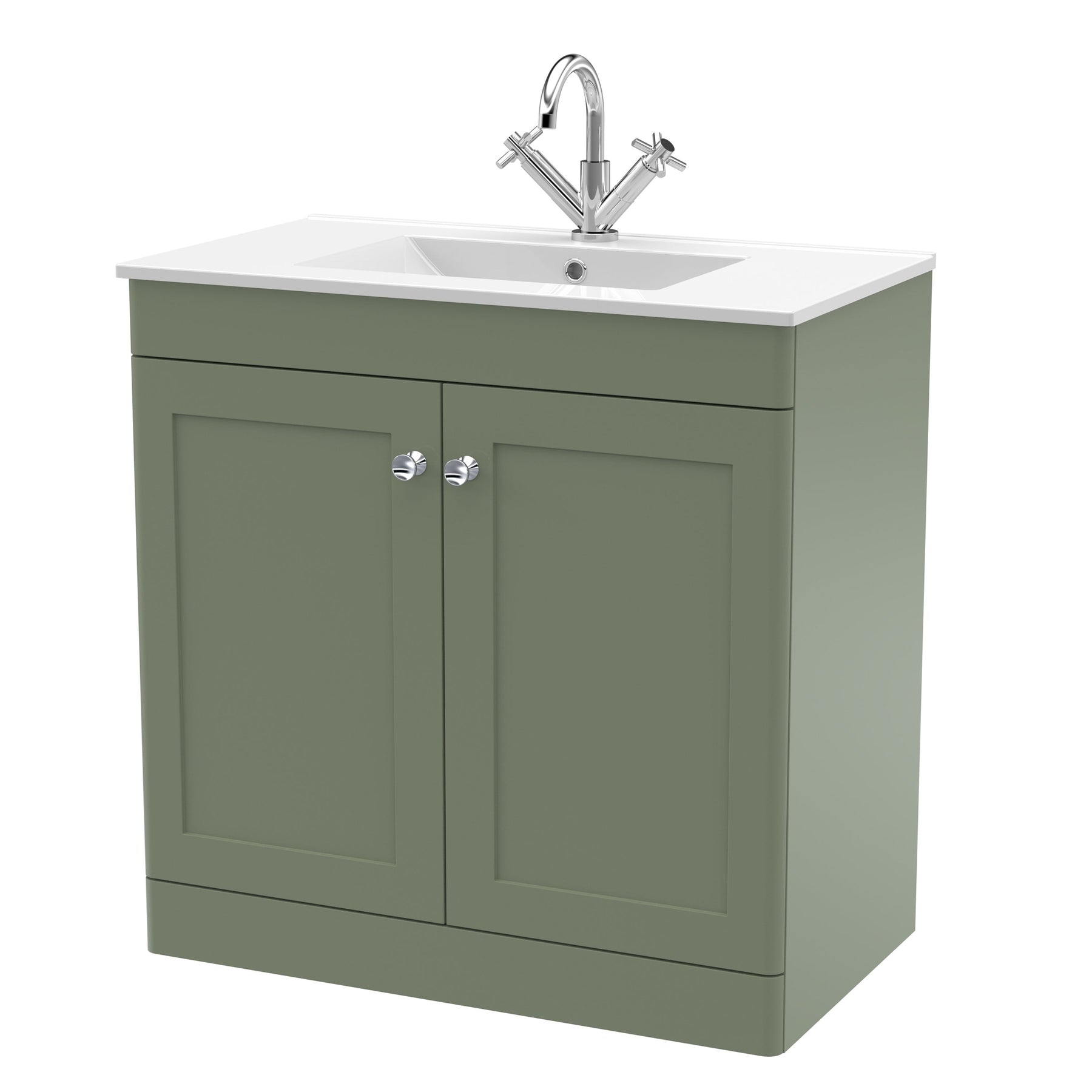 Classique 800mm Floor Standing Vanity Unit With 2 Doors With Minimalist Ceramic Basin - Satin Green