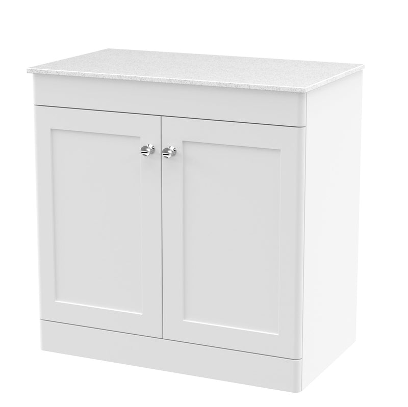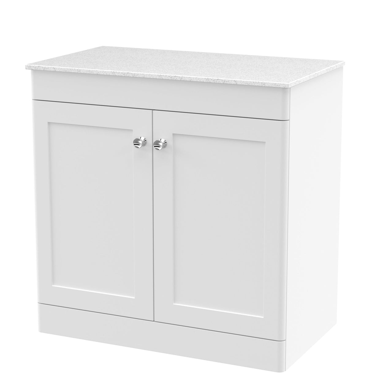 Classique 800mm Floor Standing Vanity Unit With 2 Doors With White Marble Worktop - Satin White