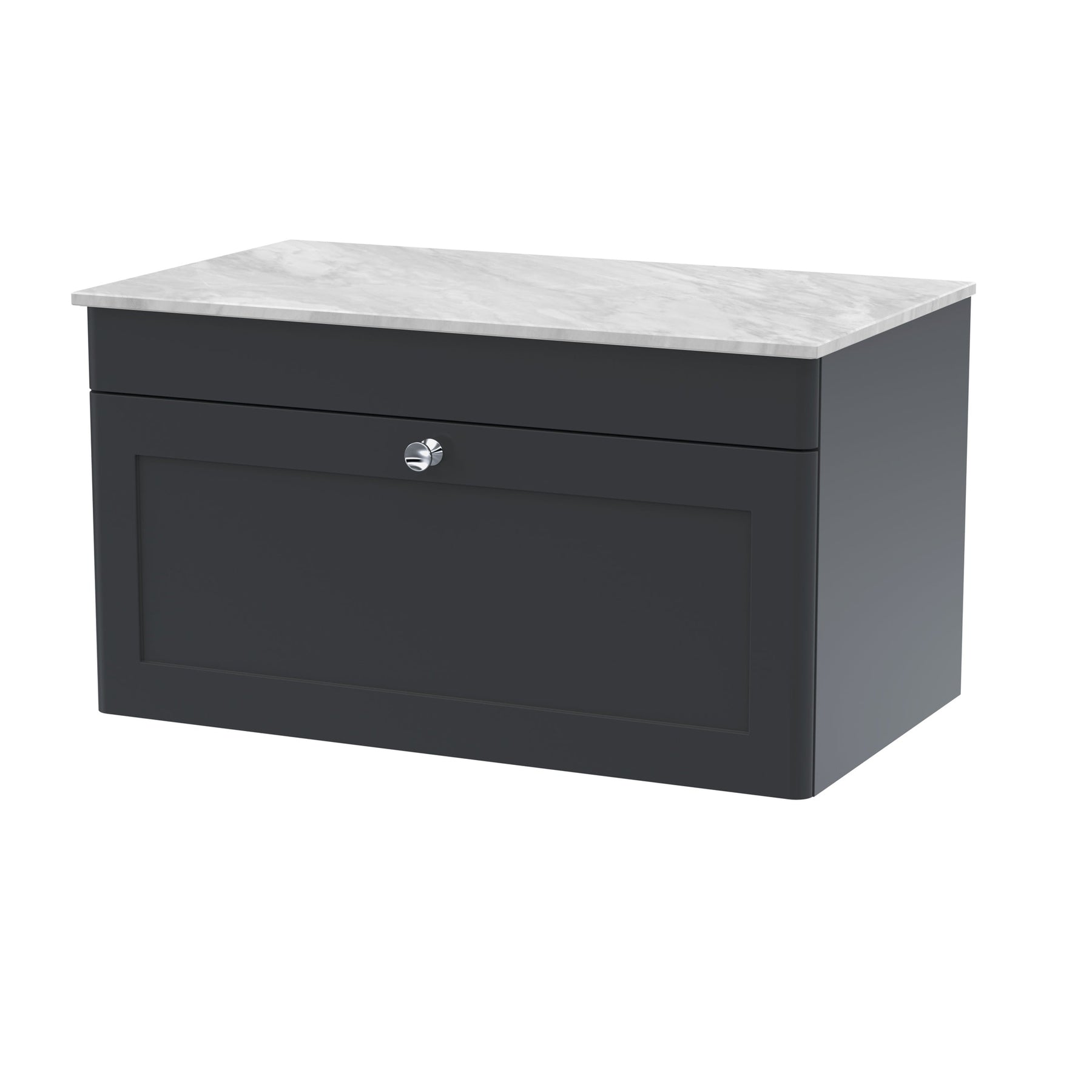 Classique 800mm Wall Hung Vanity Unit With 1 Drawer With Grey Marble Worktop - Satin Soft Black