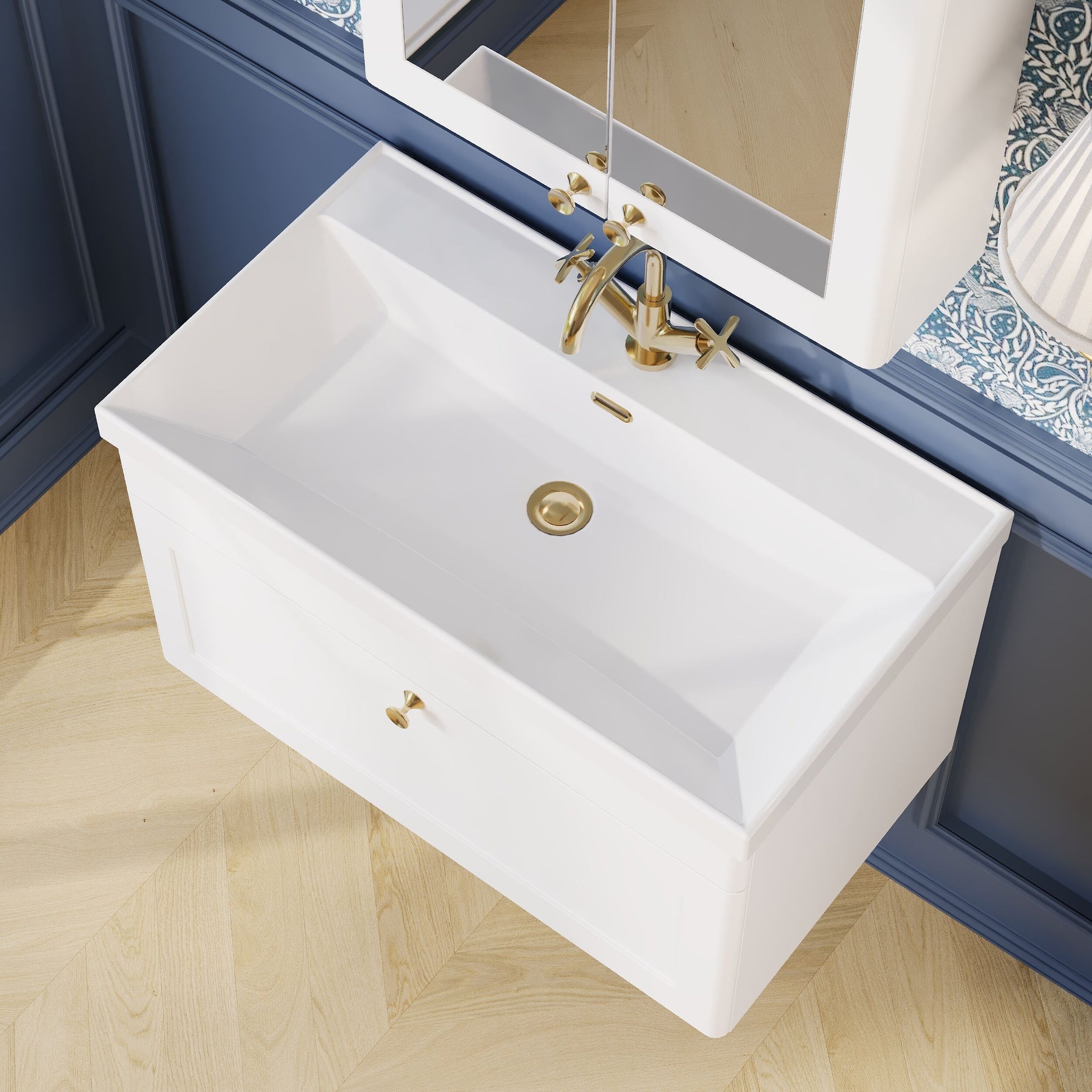 Classique 800mm Wall Hung Vanity Unit With 1 Drawer With Thin Edge Ceramic Basin - Satin White