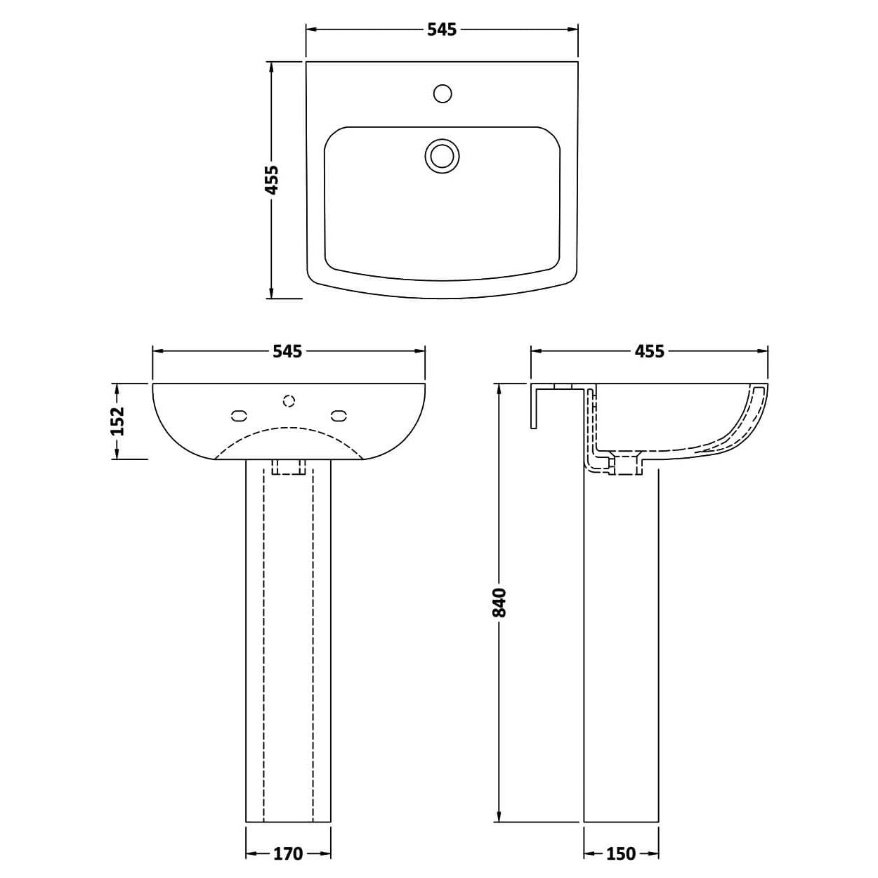 Como 545mm Basin & Full Pedestal