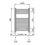 Pipe centres: 356mm on 400mm wide, 456mm on 500mm wide & 556mm on 600mm wide models