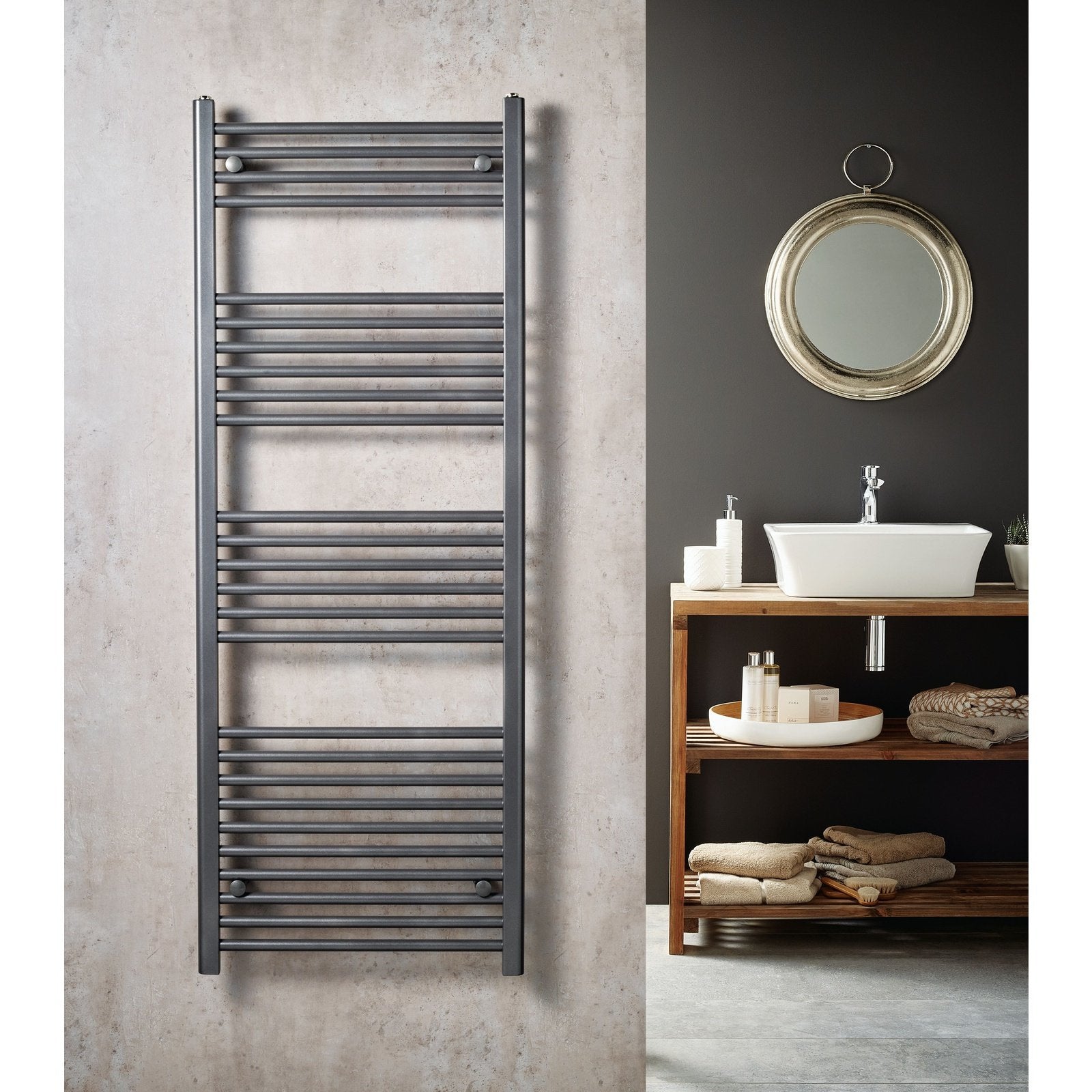 The Como Anthracite towel rail radiator has a stunning matt dark grey / almost black finish and has a modern ladder-style design making it a great place for storing towels. The towel rail features large gaps for towels and has rounded horizontal tubes. The towel rail is available in a range of sizes to suit the space you have available each with an excellent heat output level (varying dependent on size, see size information below).