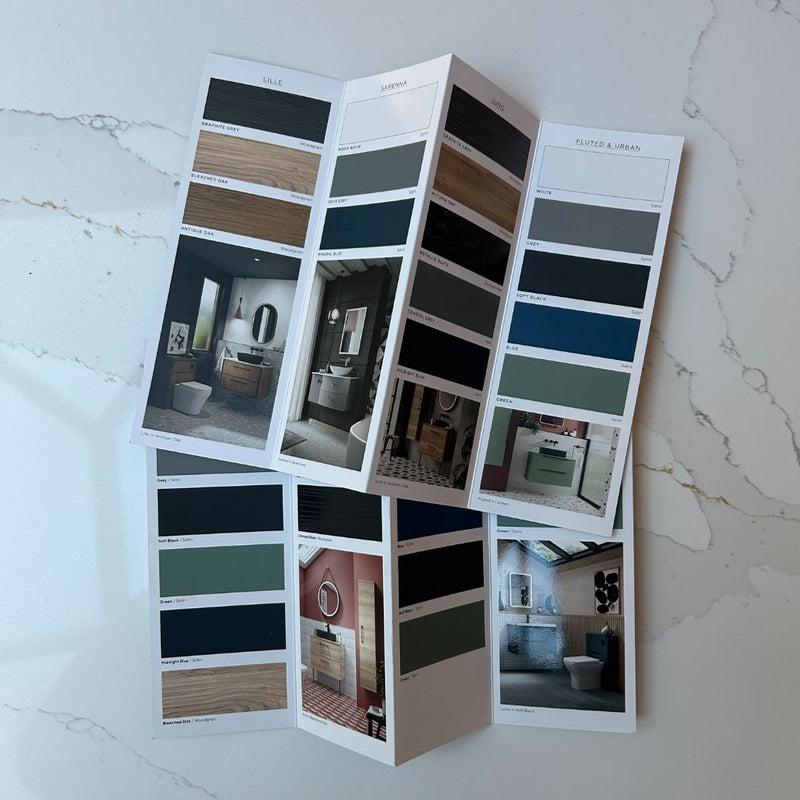 Best of all, our sample book is free of charge and will be with you within a few working days - allowing you to choose the colour of your bathroom furniture and vanity units from the comfort of your own home.