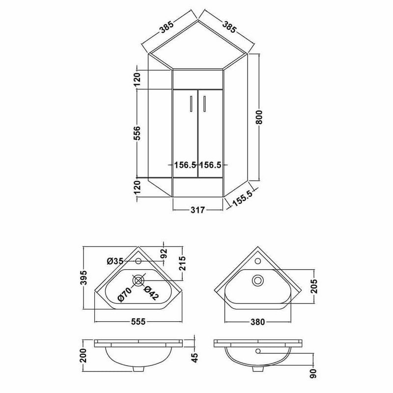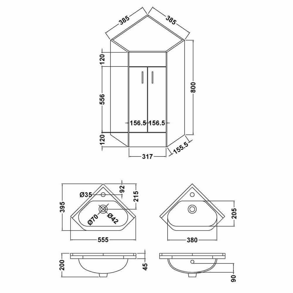 Fitting neatly into the corner of a room, the Layla corner vanity unit has a gloss white finish that looks great in contemporary bathrooms. It features two soft closing doors and an internal shelf, providing lots of space for storing toiletries away. As the unit is floor standing, it is easy to install and will cover any unsightly pipes you have coming up from the floor (where possible).