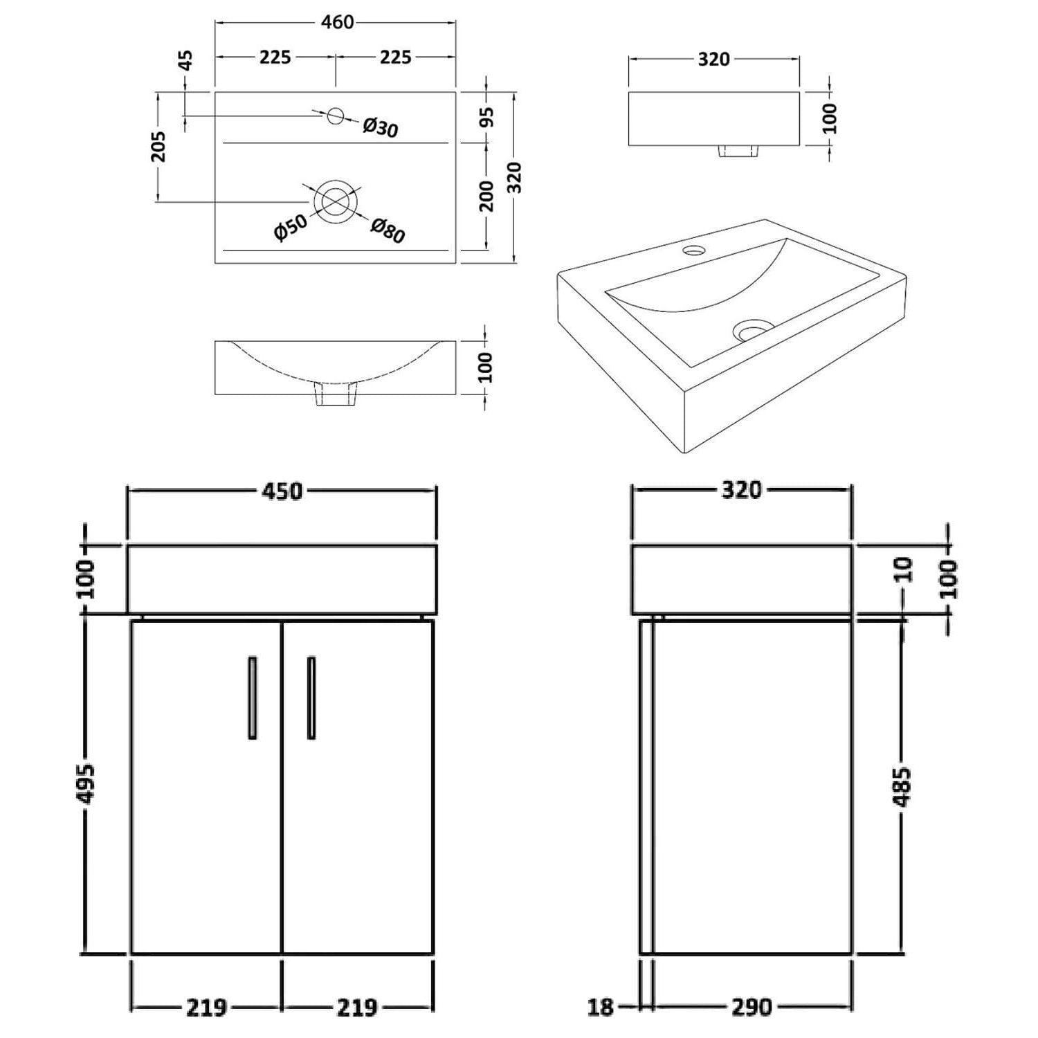 Suitable for use in cloakrooms and smaller bathrooms