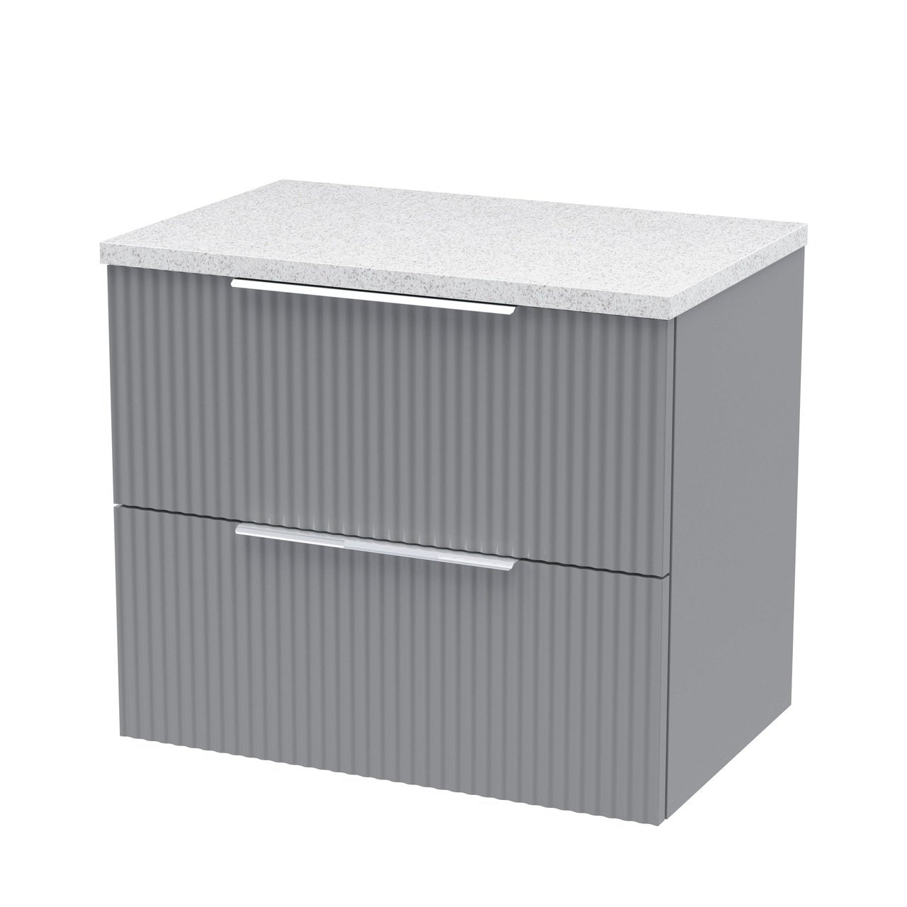 Hudson Reed Fluted Wall Hung 600mm Vanity Unit With 2 Drawers & Worktop - Satin Grey