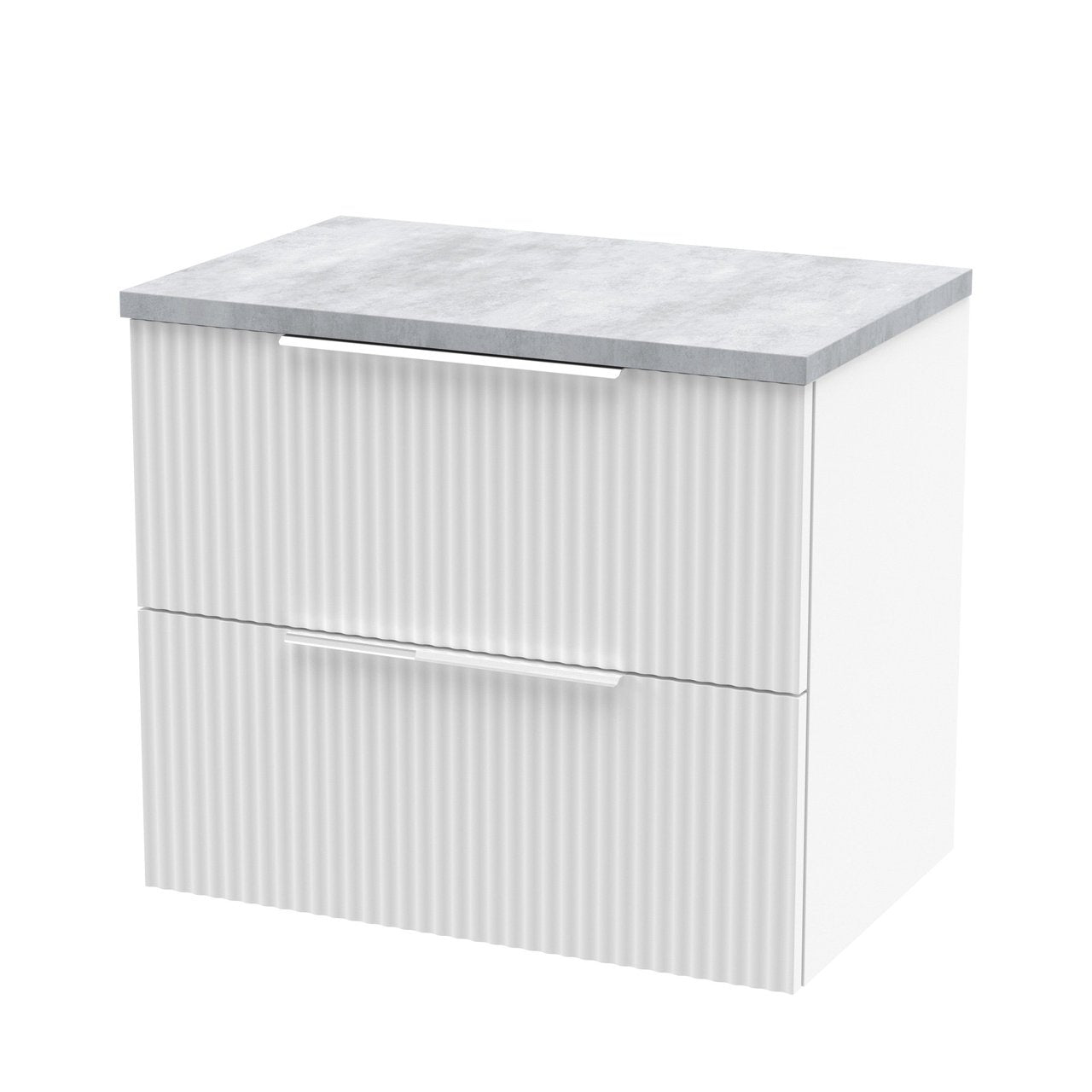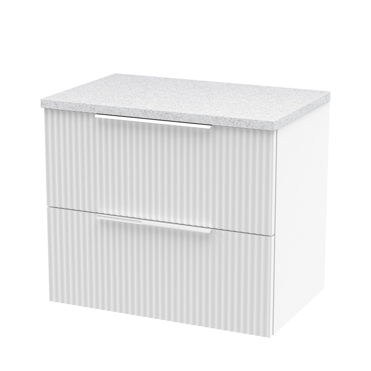 Hudson Reed Fluted Wall Hung 600mm Vanity Unit With 2 Drawers & Worktop - Satin White