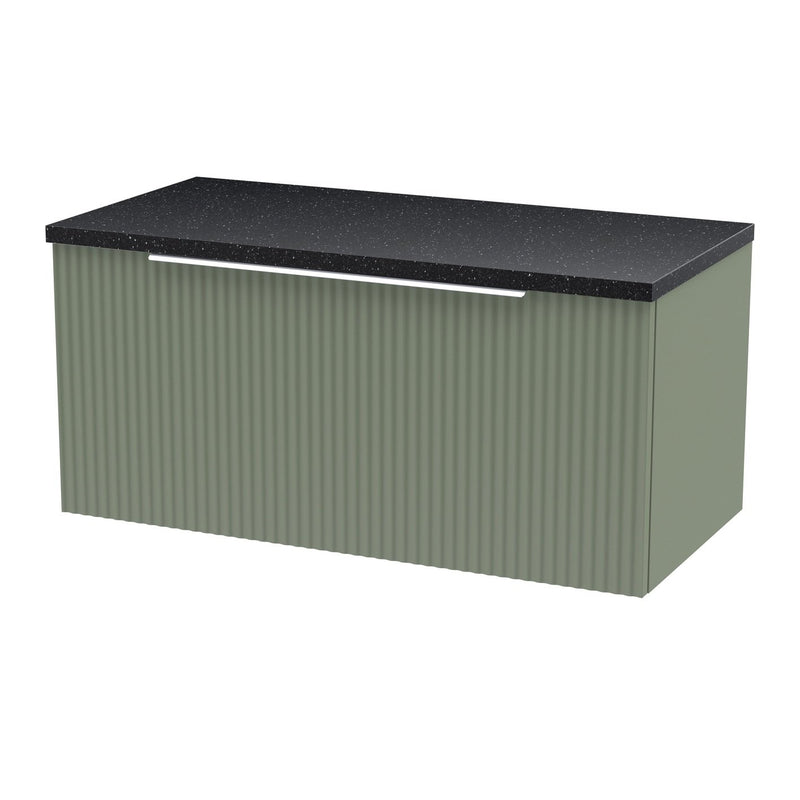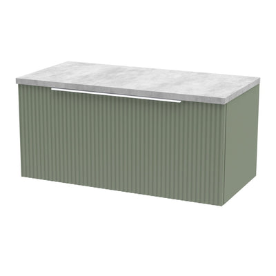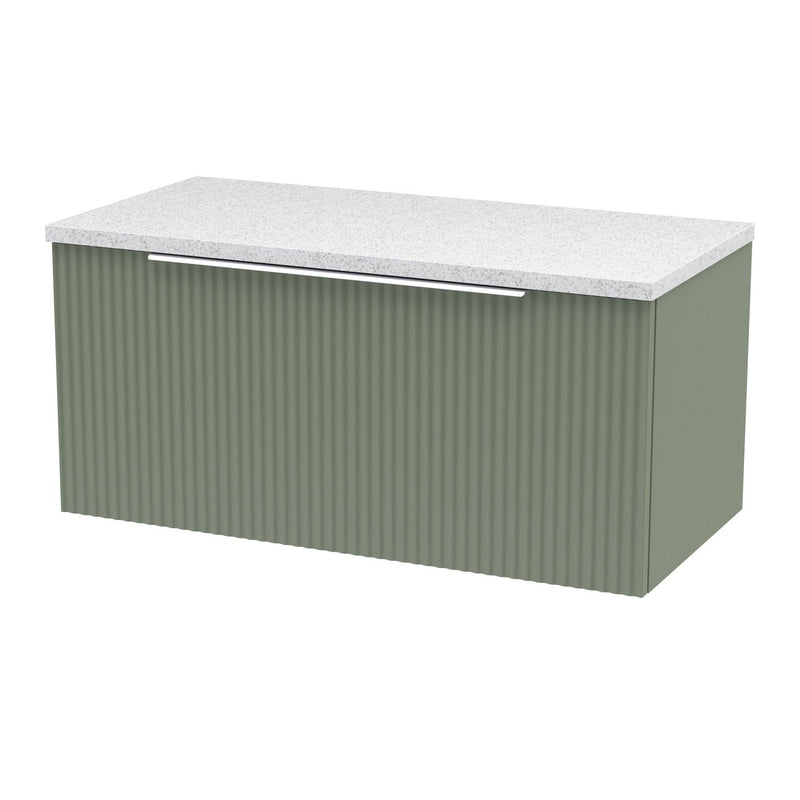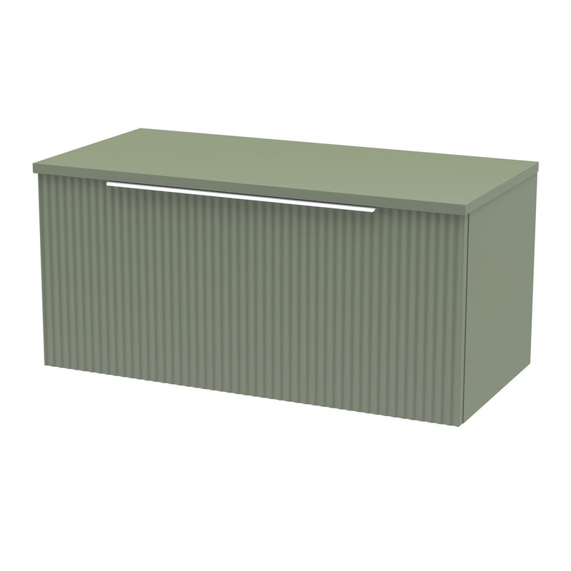 Hudson Reed Fluted Wall Hung 800mm Vanity Unit With 1 Drawer & Worktop - Satin Green