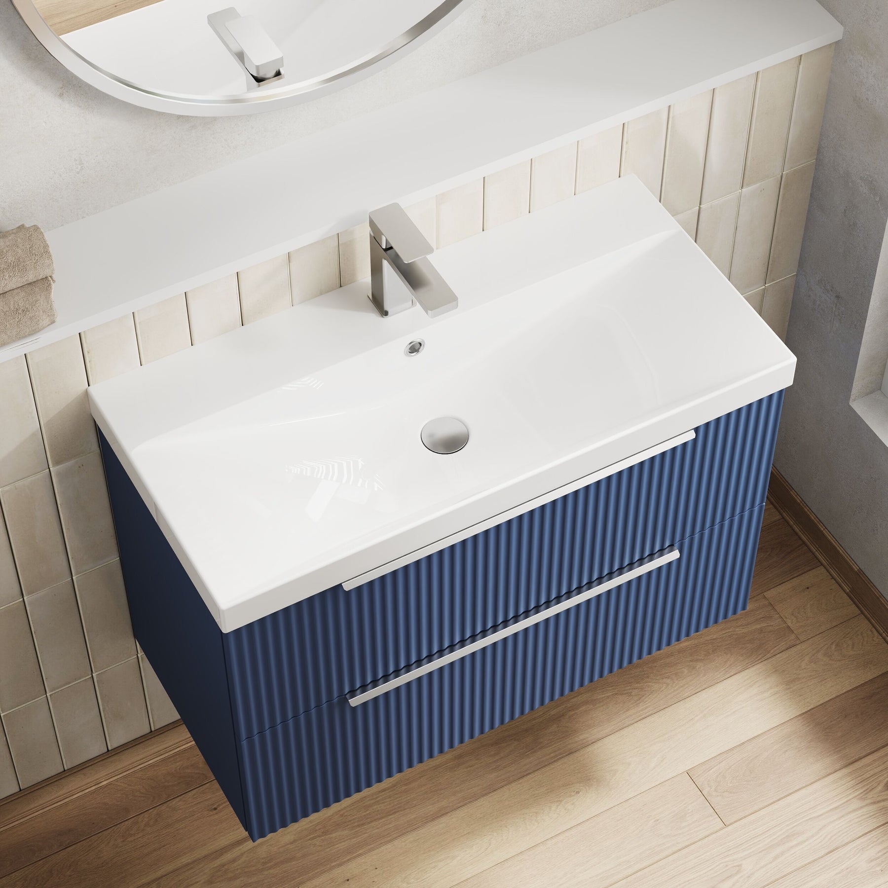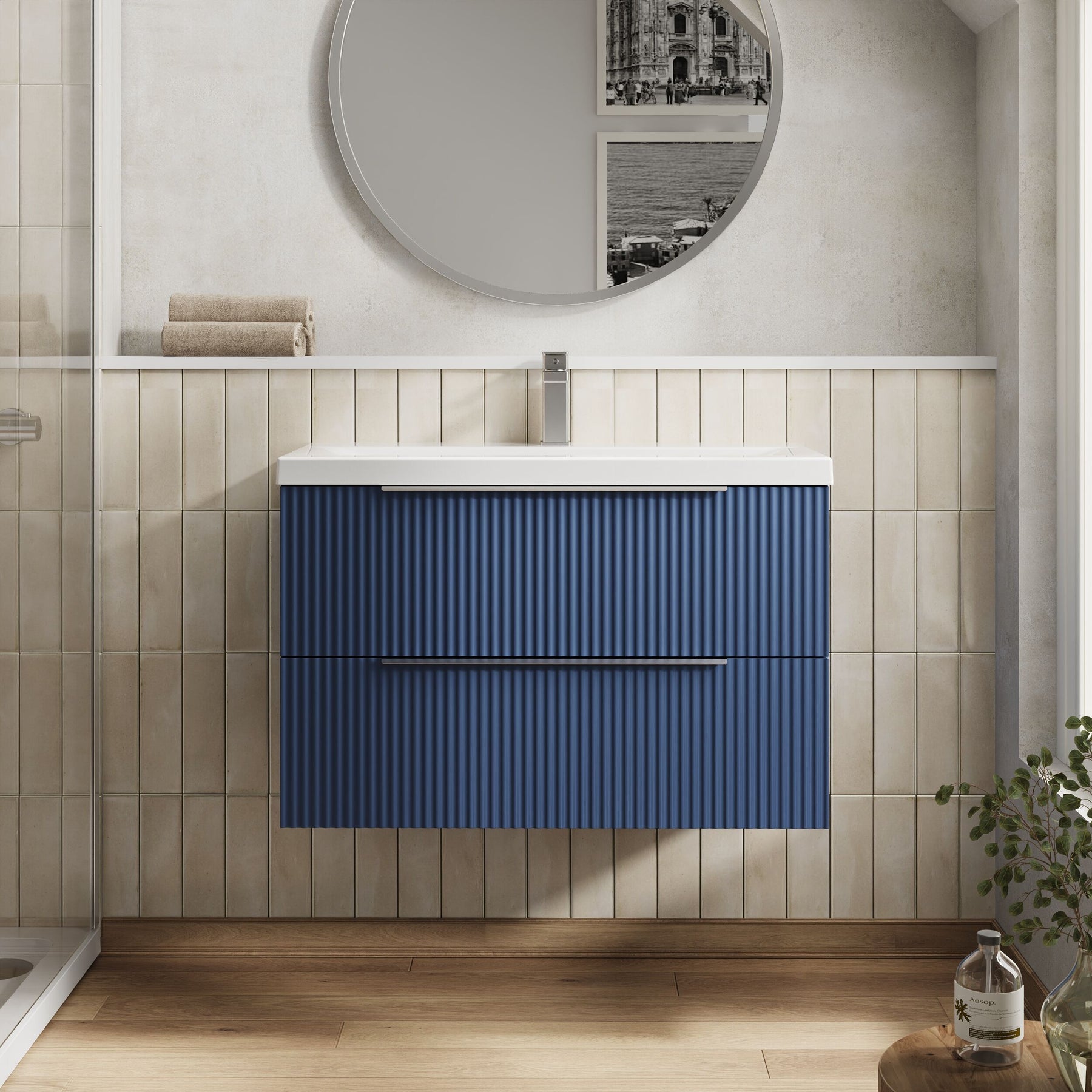 The Hudson Reed Fluted collection features a modern take on a retro design with a fluted front and choice of popular satin finishes. Long, tactile handles complete the look and can be changed for alternative coloured handles including black and brushed brass. The large wall hung 800mm vanity unit features two soft close drawers, preventing loud bangs and providing lots of storage. The unit comes with a ceramic basin in a choice of Mid Edge, Minimalist or Thin Edge designs to choose from. As the unit is wall hung, it will provide a sense of space in your room and make cleaning the floor that bit easier.. The Hudson Reed Fluted collection also includes matching WC units and tall units, allowing a coordinated bathroom design. Hudson Reed provide a 5 year manufacturer guarantee on their Fluted bathroom furniture.