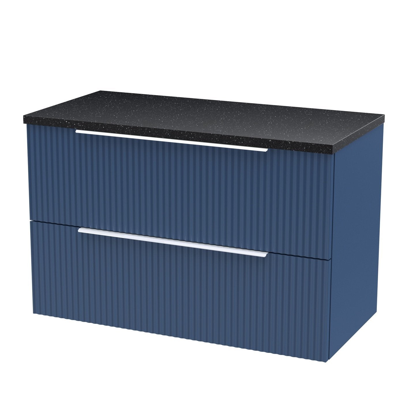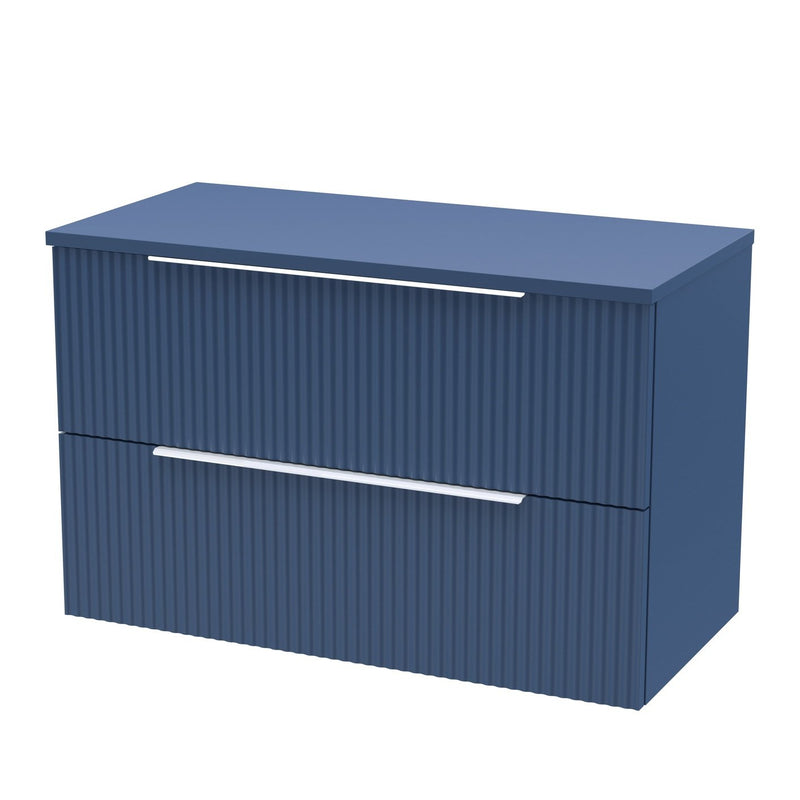 Hudson Reed Fluted Wall Hung 800mm Vanity Unit With 2 Drawers & Worktop - Satin Blue