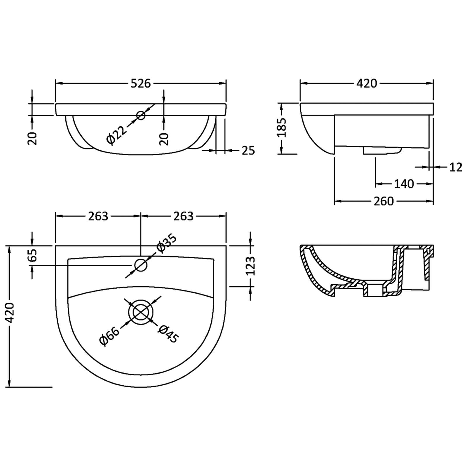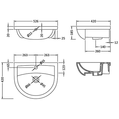 Hudson Reed Harmony 500mm Semi Recess Basin - 526 x 420mm