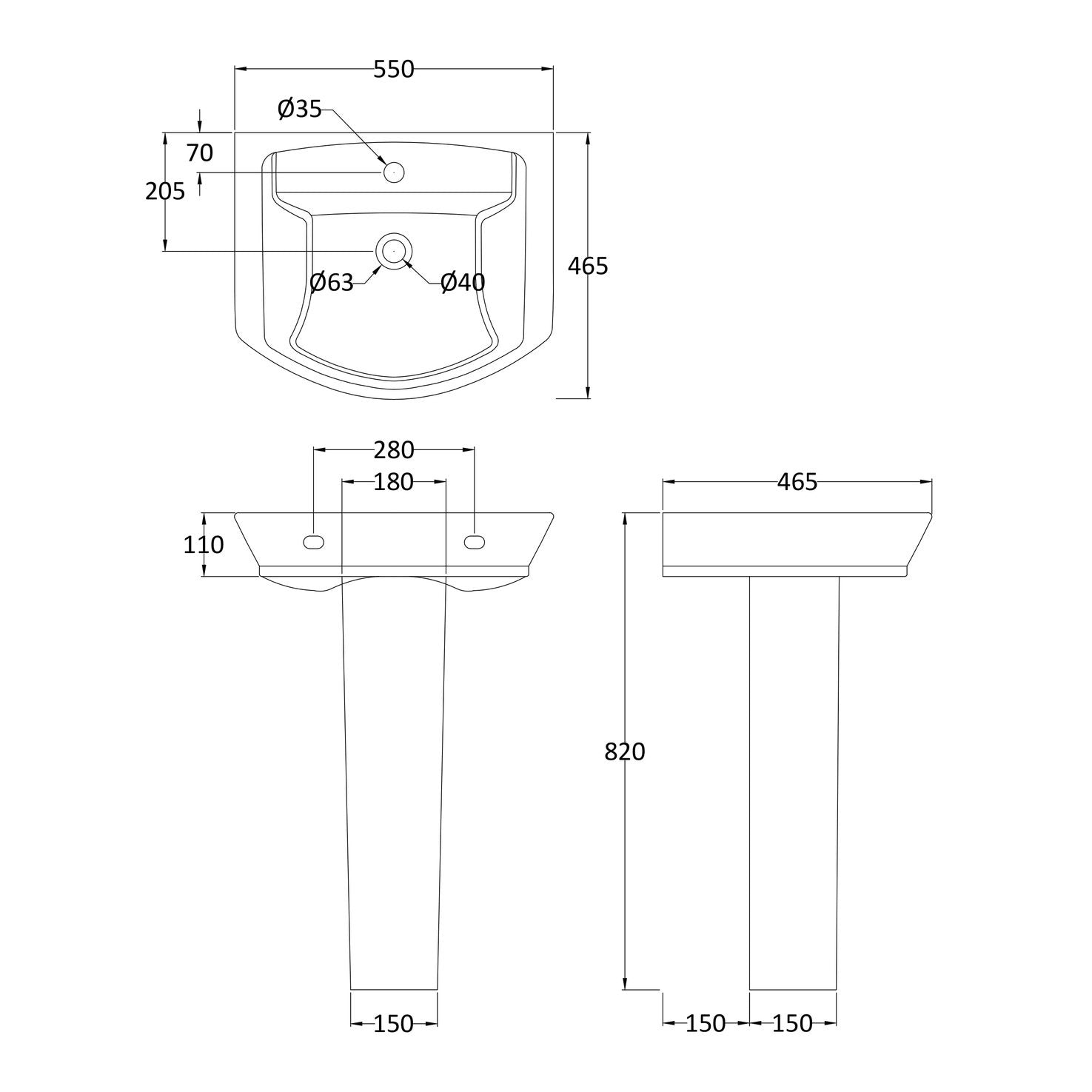 Hudson Reed Maya is an elegant, contemporary bathroom range that features straight lines with a beautifully curved front. The 550 x 465mm basin comes complete with a full pedestal to conceal pipework and is made from premium-grade ceramic with a sparkling white finish. The basin comes with a tap hole, so is for use with basin mixer taps and has an overflow, so will require a slotted or universal waste. Hudson Reed provide a 5 year manufacturer's guarantee on their elegant Maya bathroom collection.