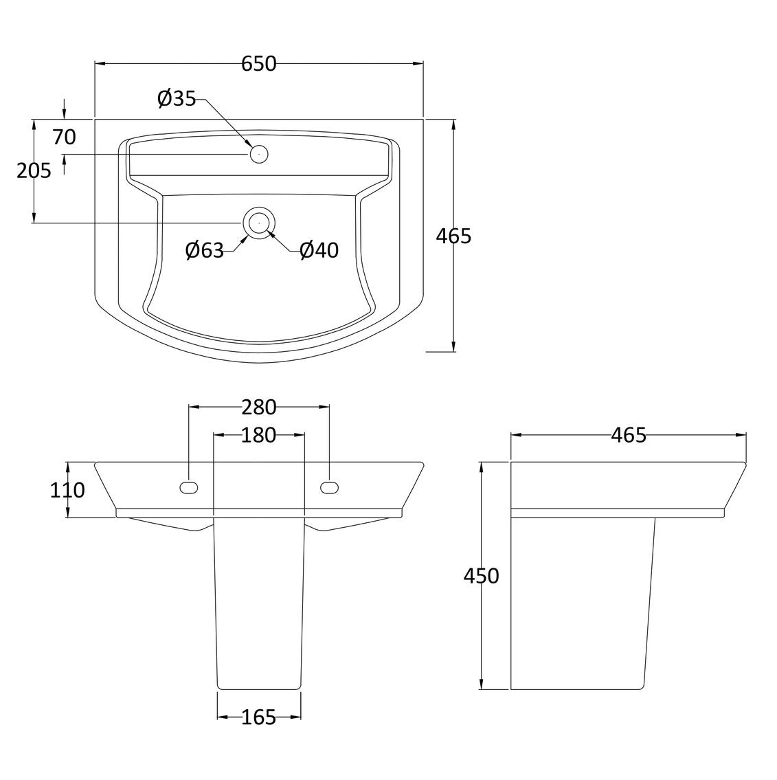 Hudson Reed Maya is an elegant, contemporary bathroom range that features straight lines with a beautifully curved front. The 650 x 465mm basin comes complete with a semi pedestal to conceal pipework and is made from premium-grade ceramic with a sparkling white finish. The basin comes with a tap hole, so is for use with basin mixer taps and has an overflow, so will require a slotted or universal waste. Hudson Reed provide a 5 year manufacturer's guarantee on their elegant Maya bathroom collection.