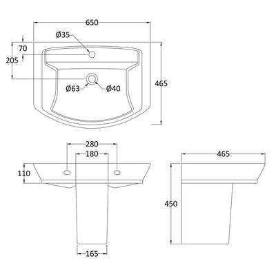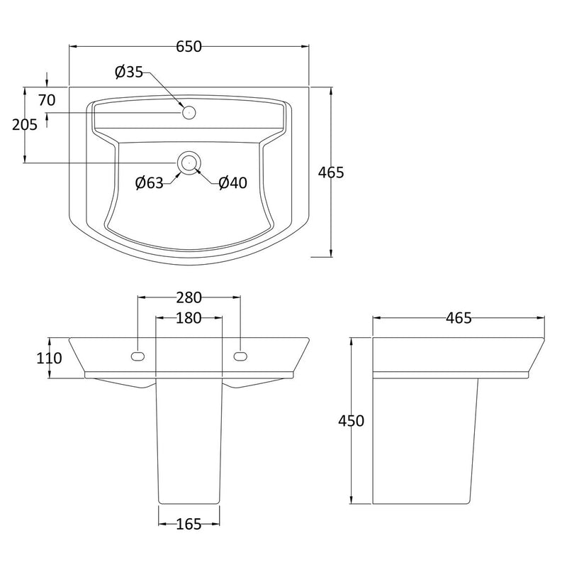 Hudson Reed Maya 650mm Basin & Semi Pedestal