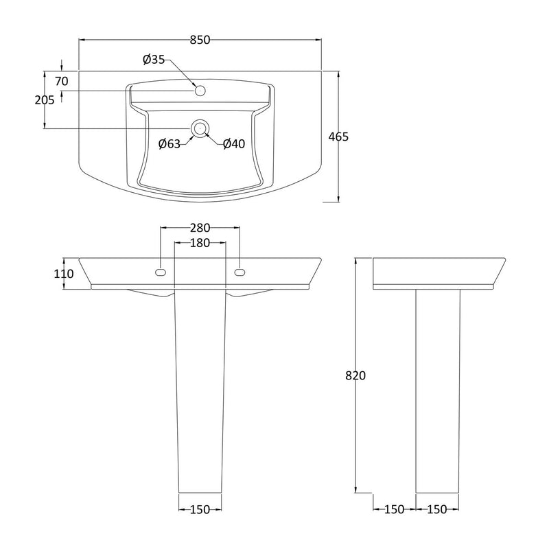 Hudson Reed Maya 850mm Basin & Full Pedestal
