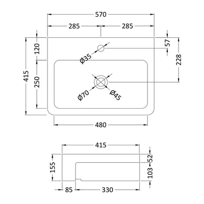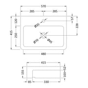 Hudson Reed Rectangular Vessel Semi Recess Basin - 570 x 415mm
