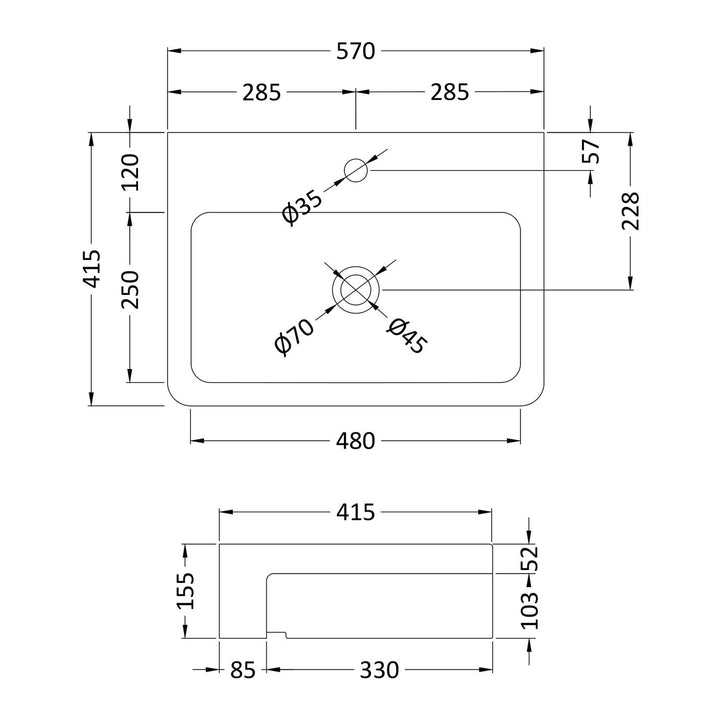 This vessel semi recessed basin from Hudson Reed features a sleek rectangular design, making it perfect for modern bathrooms. Made from premium-grade ceramic, with a sparkling white finish, this semi-recessed basin can be fitted either into furniture or a counter top. The recessed design allows you to mount the basin half way in, saving space and maximizing access. The basin comes with a tap hole, so it is suitable for use with basin mixer taps. It has an overflow so will require a slotted or universal waste for installation. Hudson Reed provide a 5 year manufacturer's guarantee on their semi recess basins.