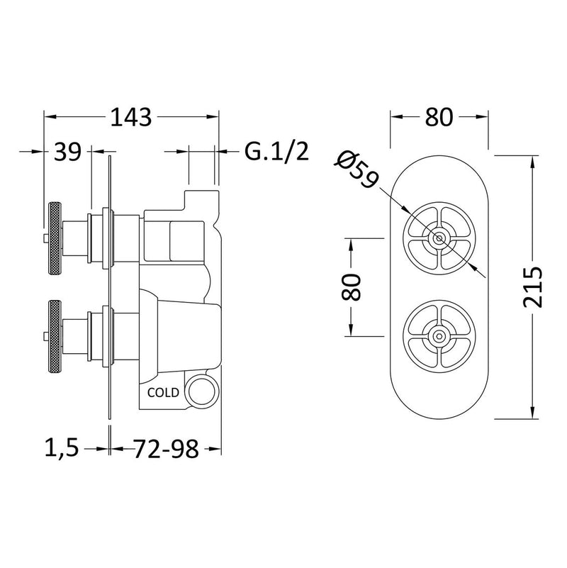 Hudson Reed Revolution 1 Outlet Twin Handle Concealed Thermostatic Shower Valve - Brushed Brass