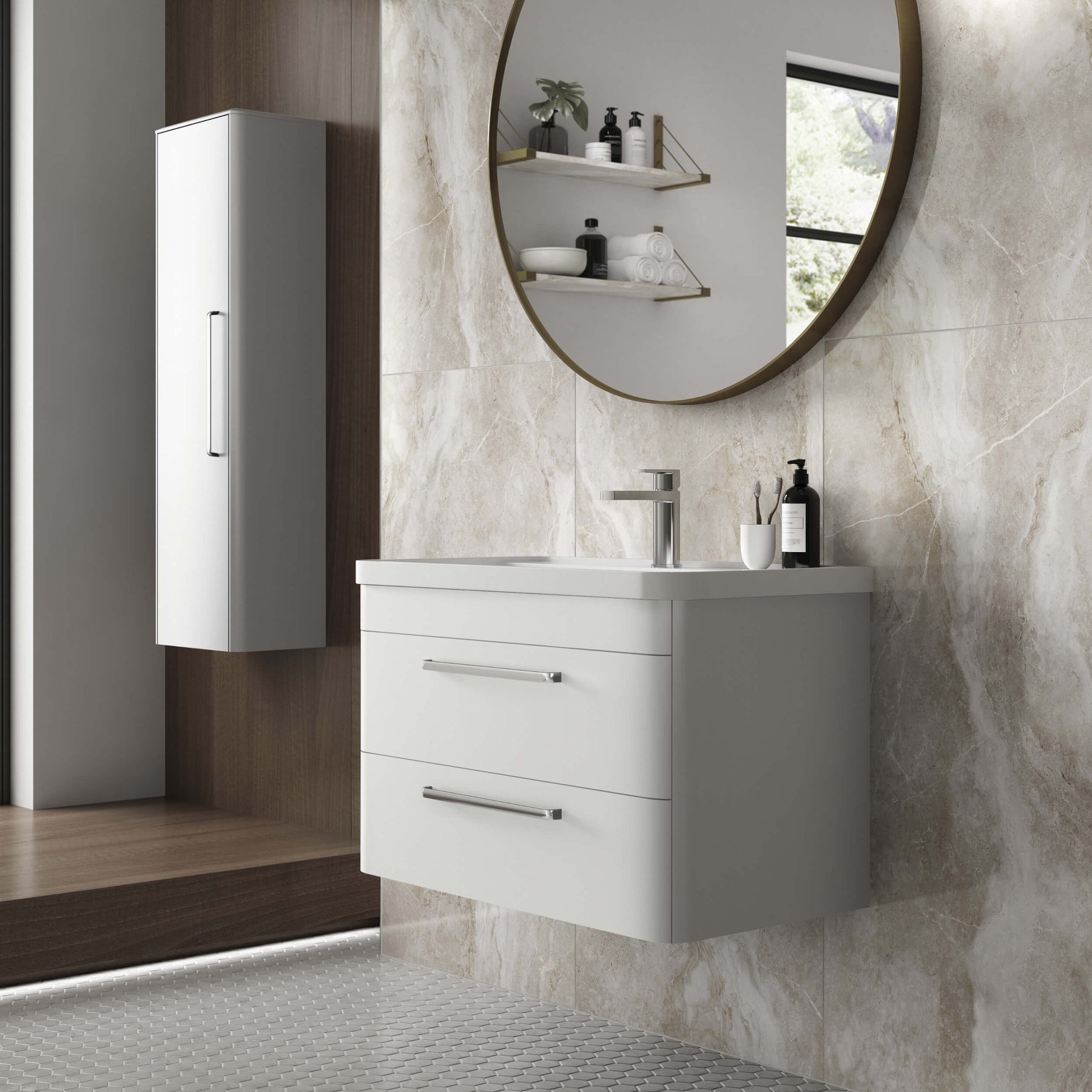 Hudson Reed Solar provides the ultimate in curved luxury bathroom furniture. The rounded contours of Solar are available in floor-standing or wall hung options, in a selection of stunning matt colours with anti-fingerprint technology.