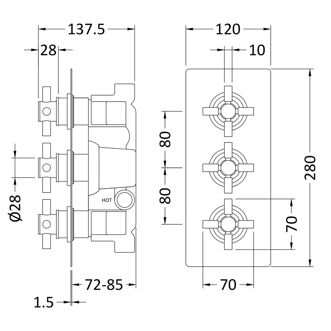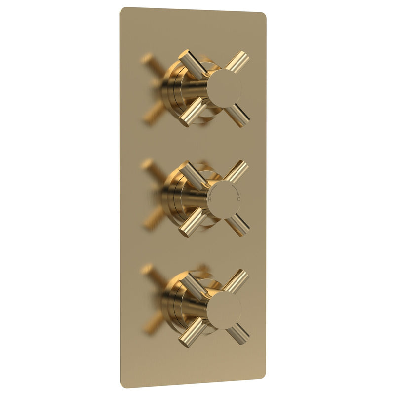 Hudson Reed Tec Cross 2 Outlet Triple Handle Concealed Thermostatic Shower Valve - Brushed Brass