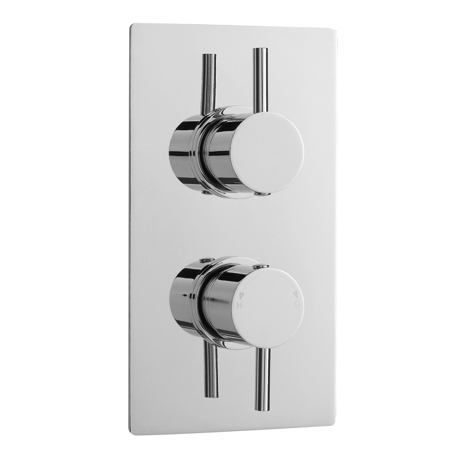 The Jenson Round concealed thermostatic shower valve has a simple rounded design featuring handle levers for easy use and a polished chrome finish. Combine it with matching products within the Jenson collection for a coordinated finish in contemporary bathroom settings. This concealed valve features thermostatic technology that prevents surges in water temperature that can lead to scalding or cold water.